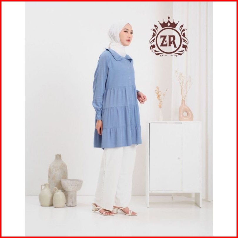Tunik Susun Kerah Ruffle Rayon Tuwil Premium
