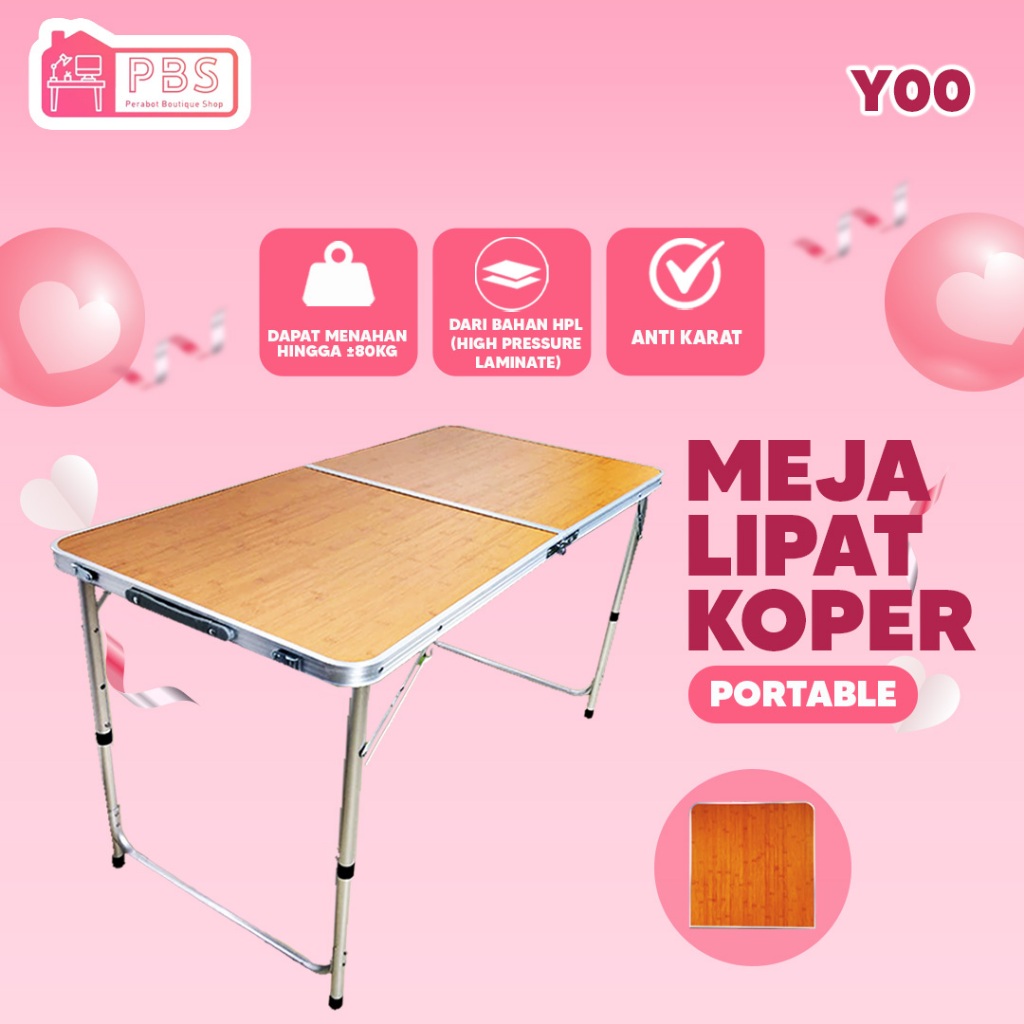 PERABOT Meja Laptop Lipat Portable Meja Lipat Belajar Meja Kerja Uk Model Kaki Bulat 120cm X 60cm