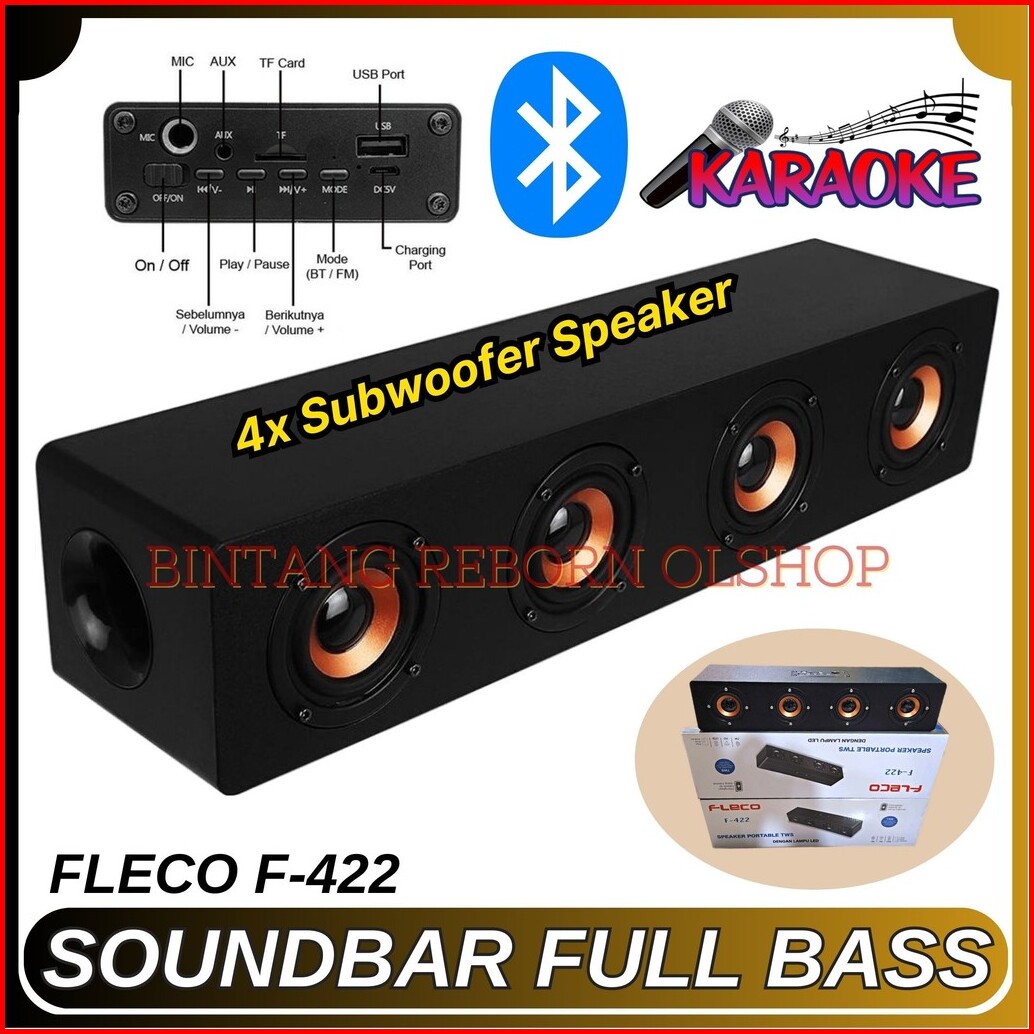 Soundbar Super Bass Fleco F-422 Speaker Panjang Soundbar Bluetooth Stereo Subwoofer Theater Audio 3d Efek Suara Bisa Dic