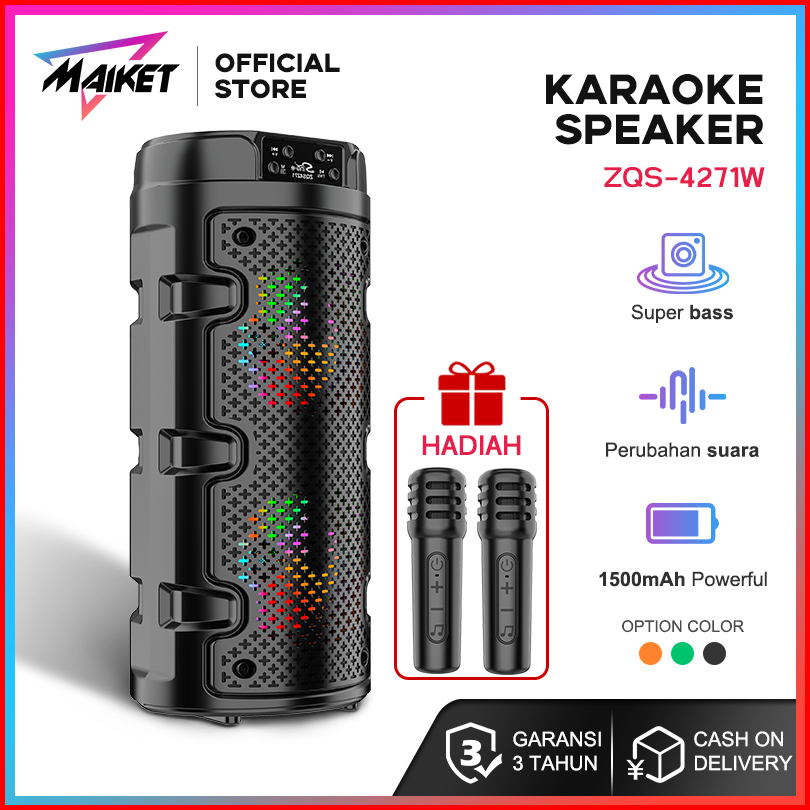 Maiket Speaker Bluetooth Karaoke 2 Microphone Wireless Salon Portable Rgb Super Bass Garansi 3 Tahun