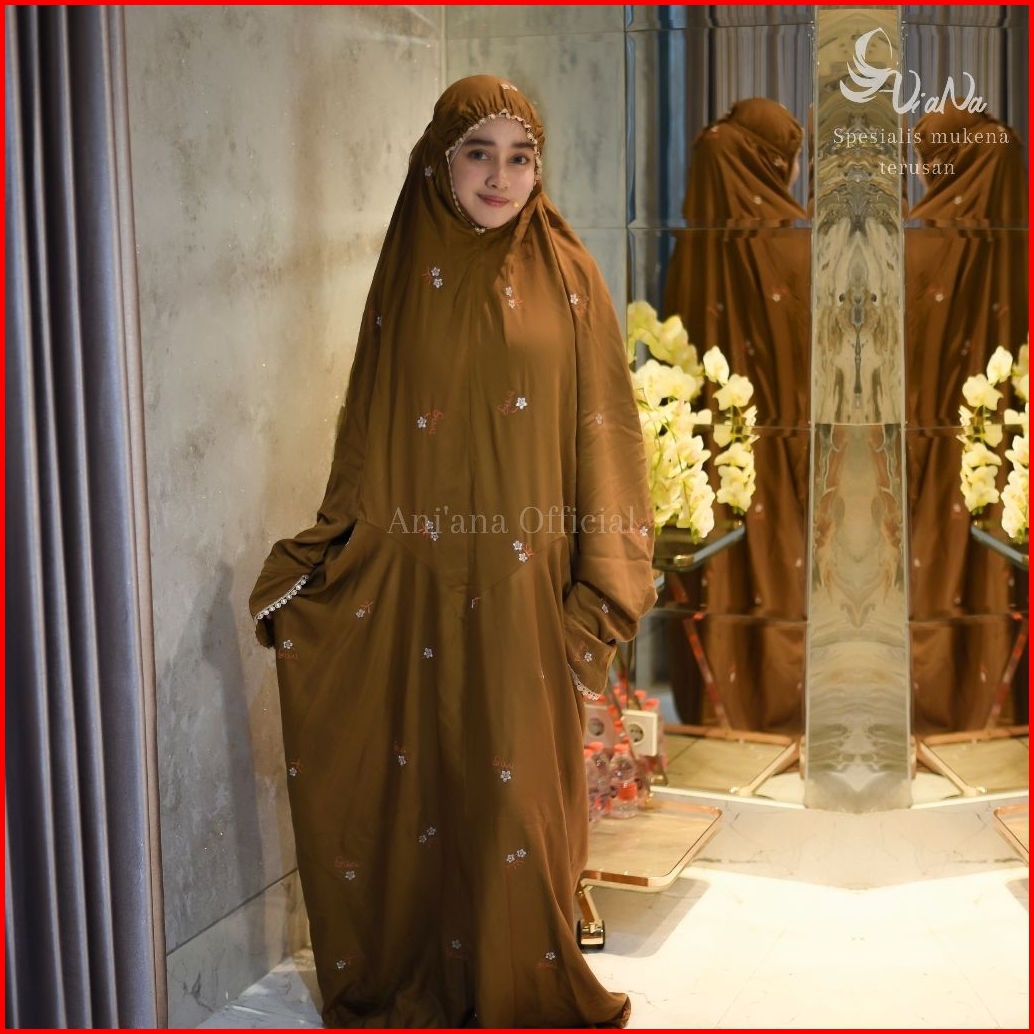 Ani Ana - Mukena Terusan Bordir Bahan Rayon Twil Premium Kbi Motif Bunga Kecil Cantik Bordir Timbul Ani Ana Alisha