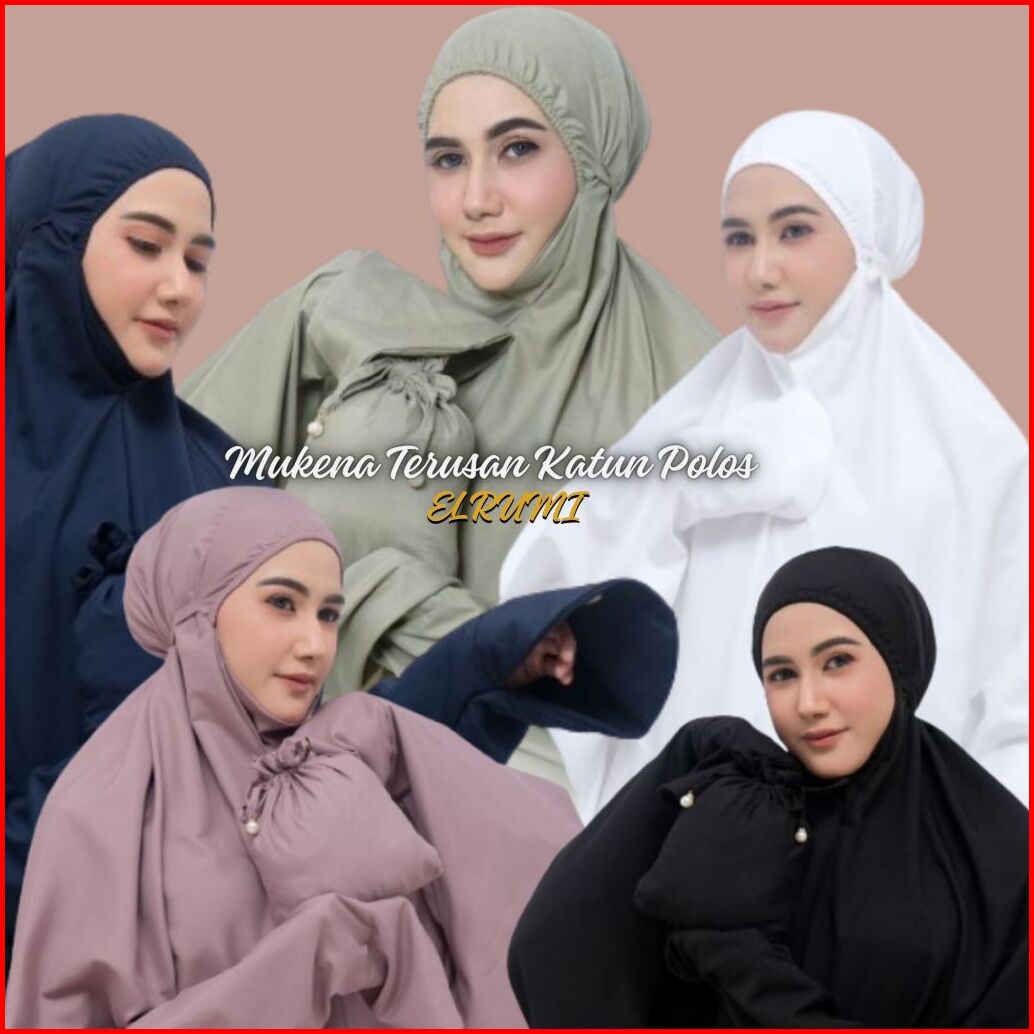 Mukena Elrumi - Mukena Terusan Dewasa Polos Katun Premium Jumbo