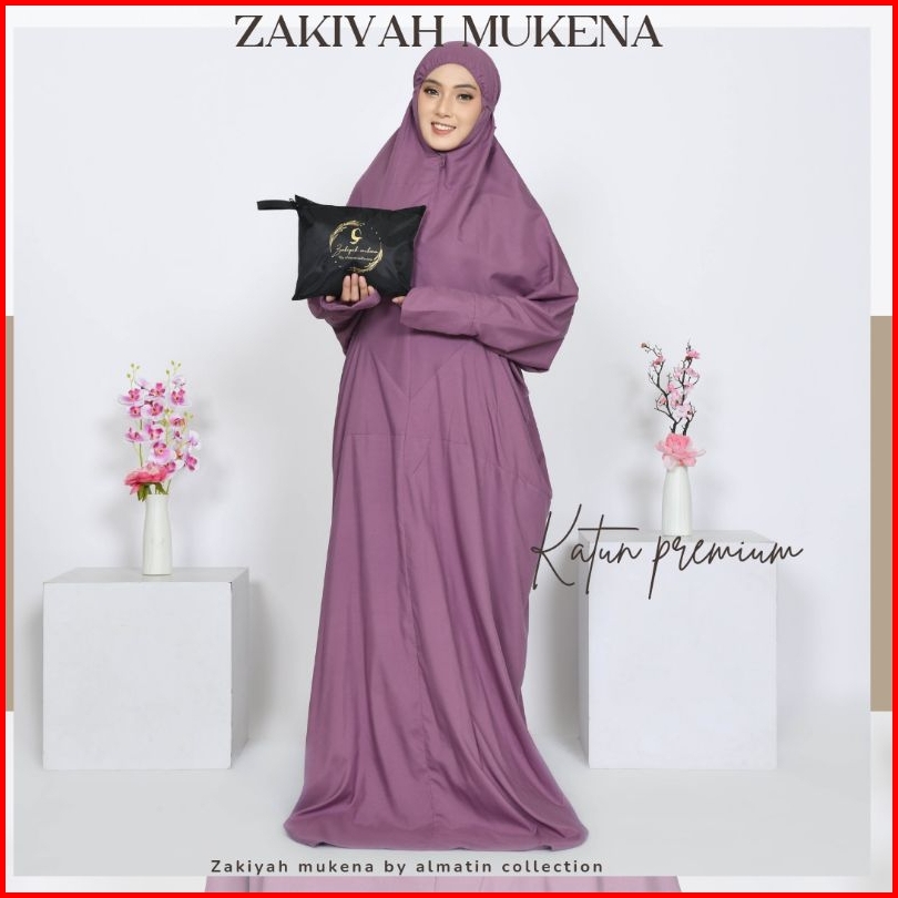 Mukena Terusan Dewasa Travelling Jumbo Katun Premium Mukenah Lajuran Polos Free Tasbih