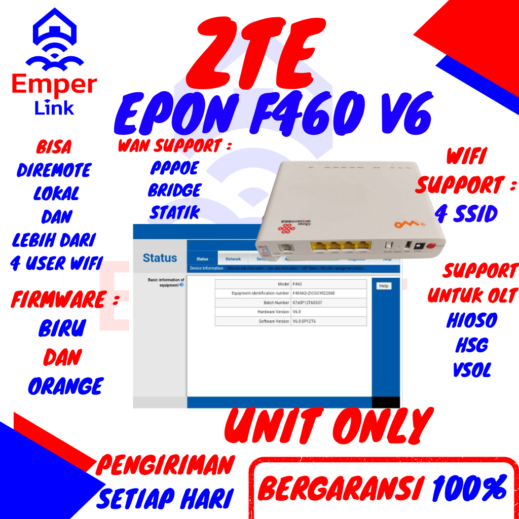 ZTE F460 V6 F460V6 EPON FIRMWARE BIRU FIRMWARE ORANGE PPPOE VLAN STATIC BRIDGE ALL OLT HIOSO HSGQ