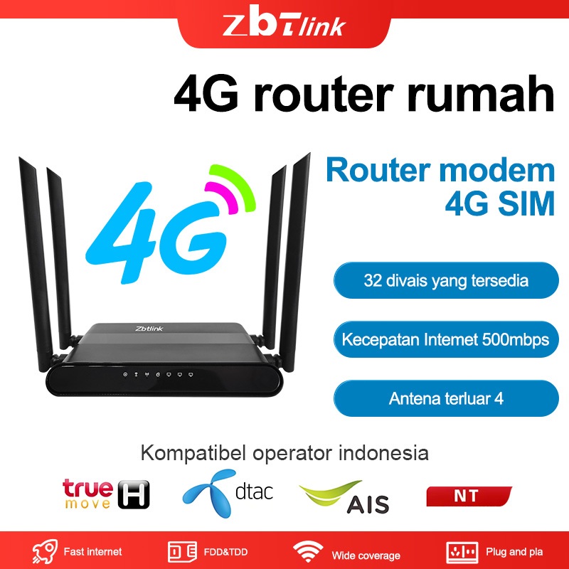 ZBTlink Modem Router 4G LTE,500Mbps WiFi, Slot SIM & Port LAN - Internet Kapan Saja