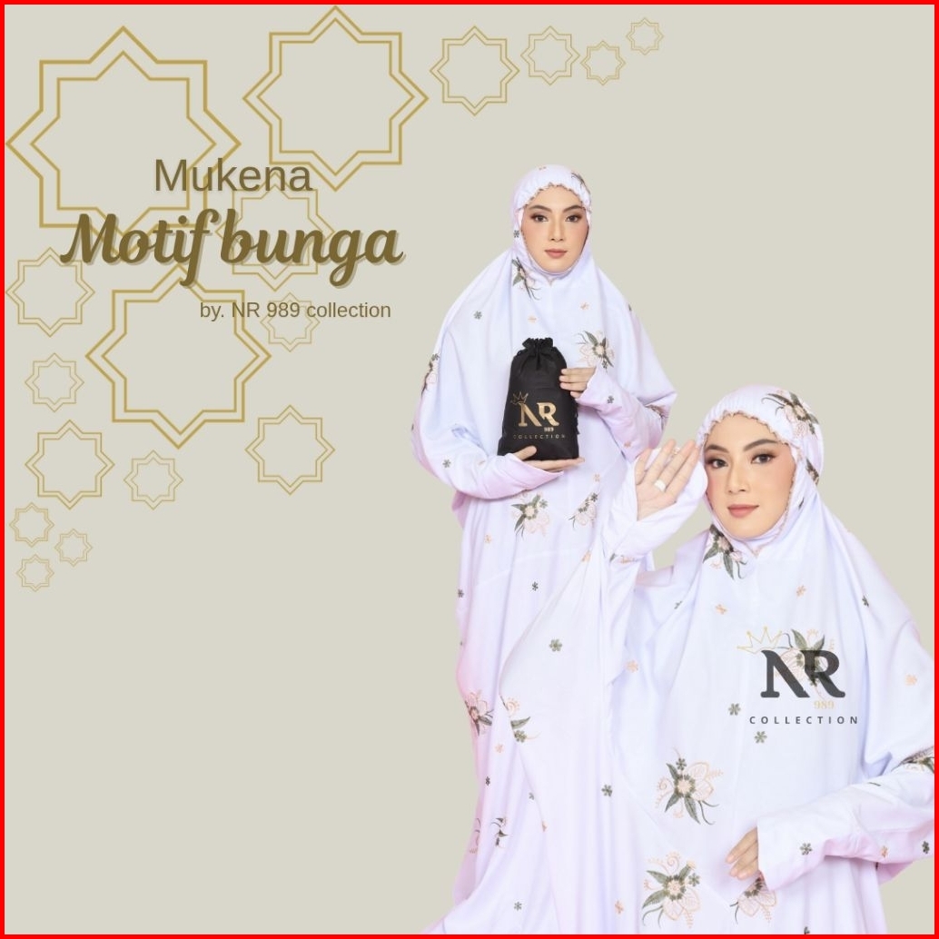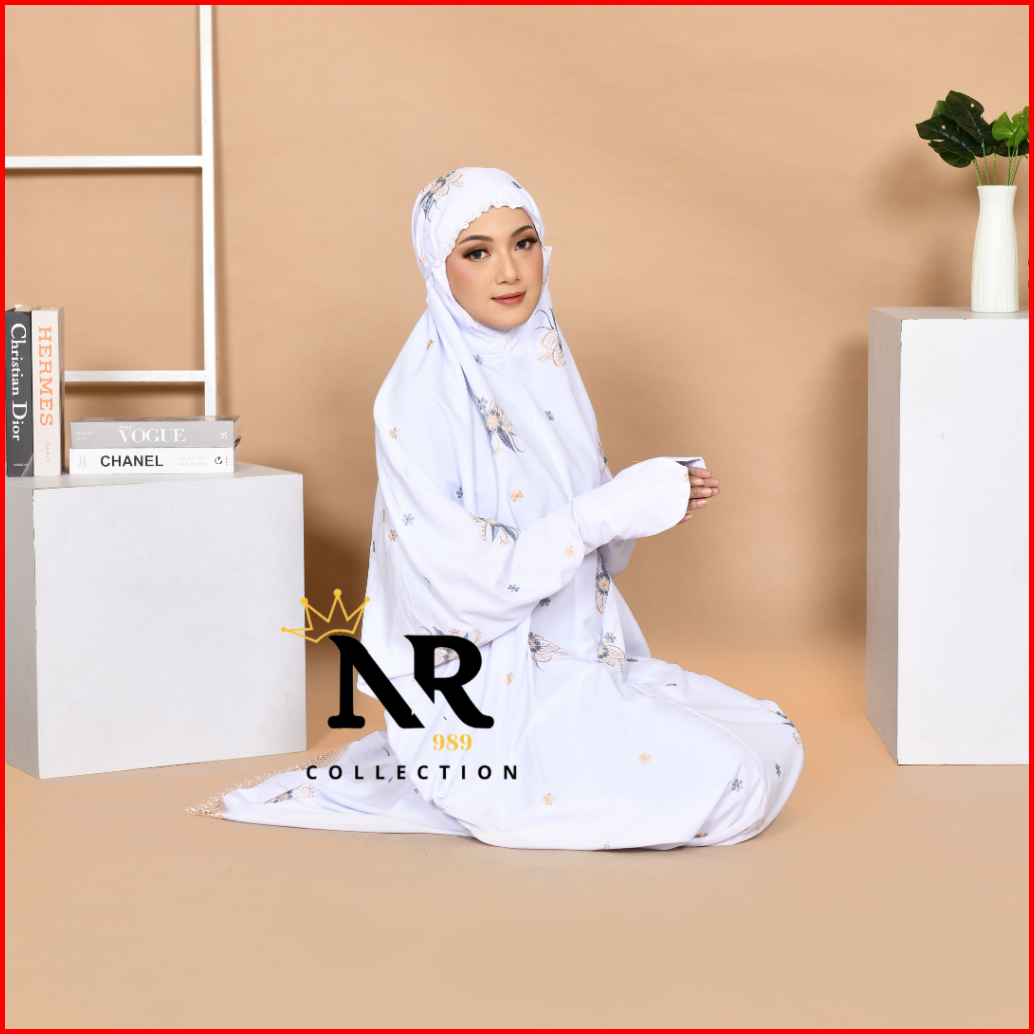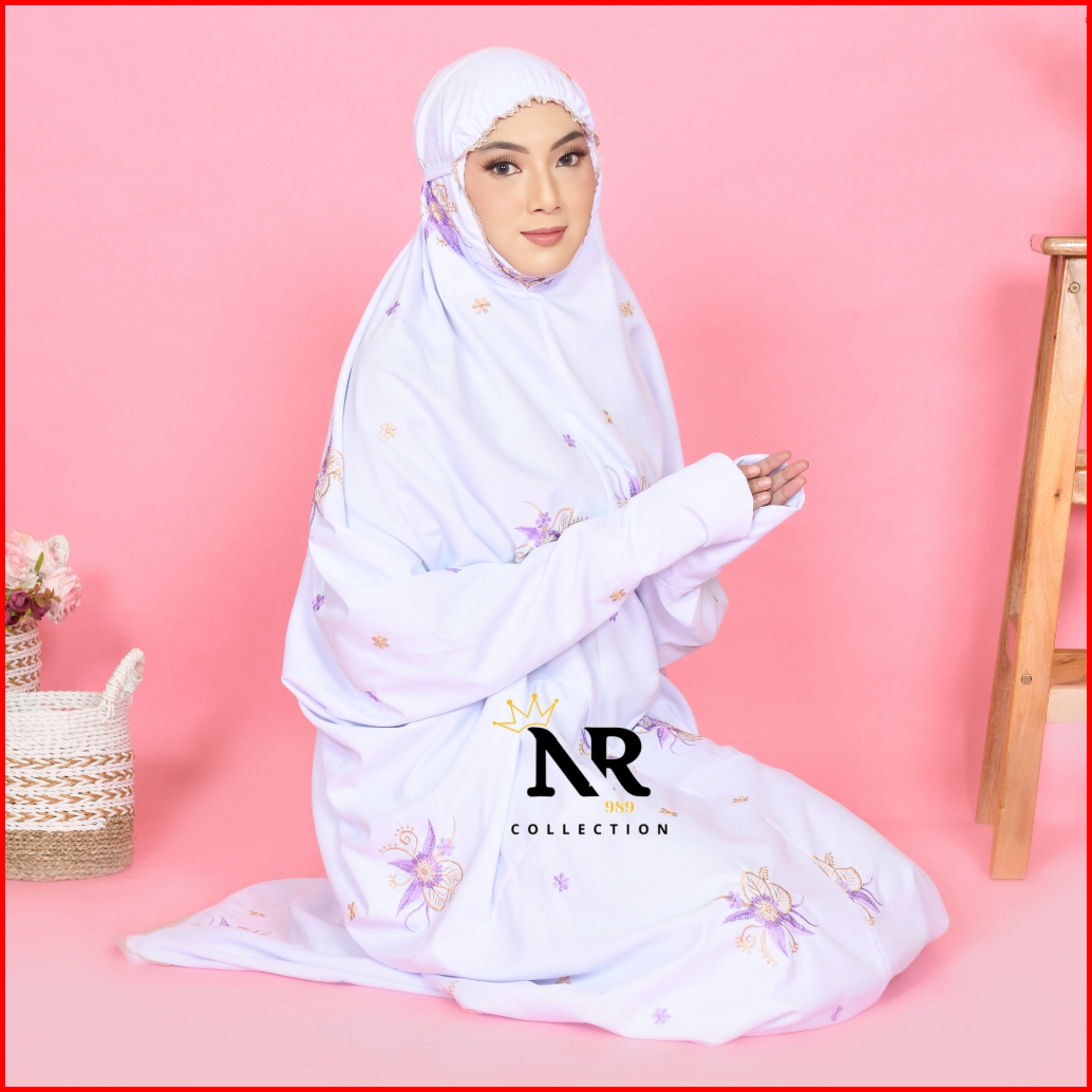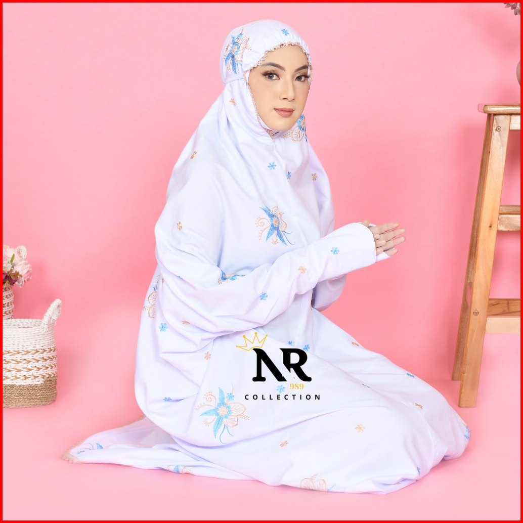 Nr989 - Mukena Terusan Dewasa Bordir Bunga Serangkai Katun Premium