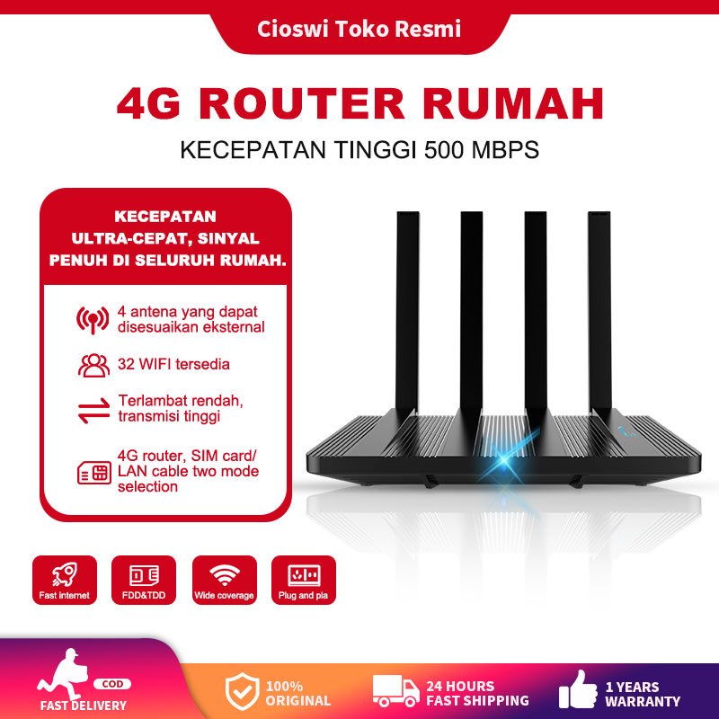 Cioswi 4G SIM Wifi Wireless Router 500Mbps High Speed Modem 4 Antenna Pintar Portabel untuk Rumah Kantor