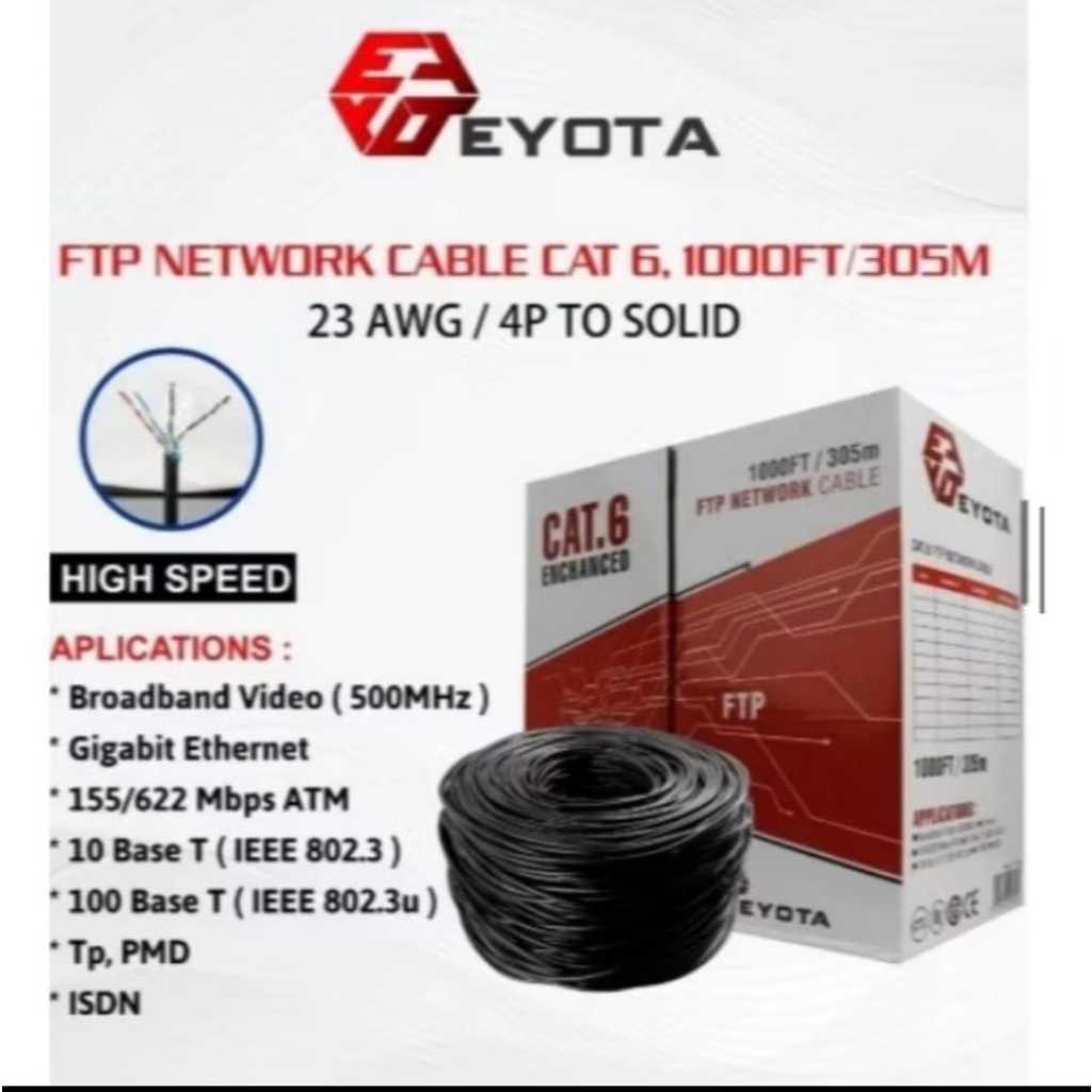 KABEL LAN UTP / FTP CAT 6E EYOTA 300 METER SUPPORT POE KOMPUTER PC LAPTOP DESKTOP CCTV