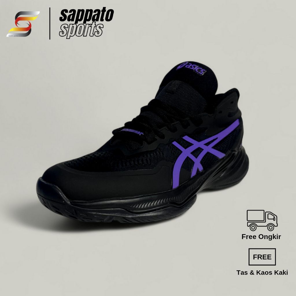 Sepatu Voli Sky Elite 2 Black Purple Sepatu Volly Ball Viral Bonus Tas dan Kaos Kaki