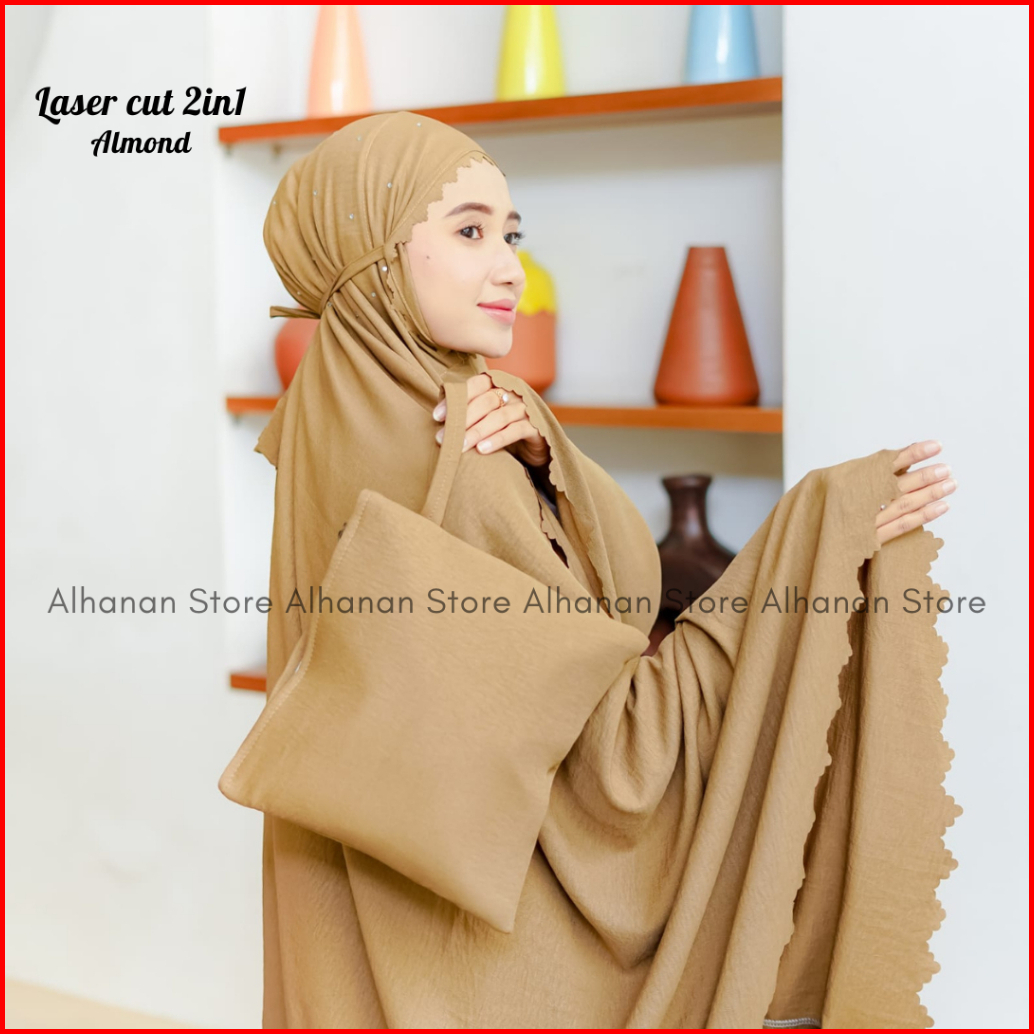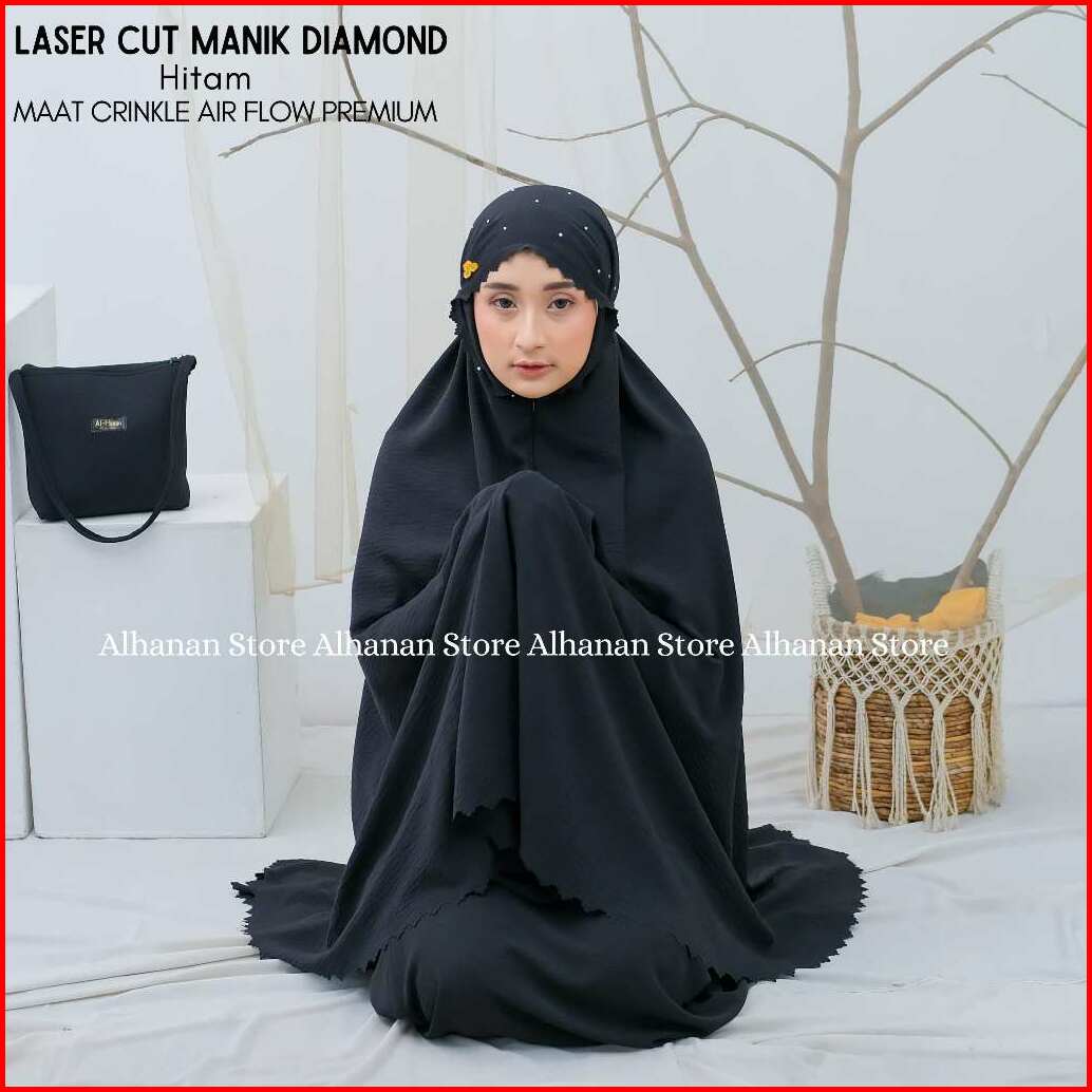 Alhanan - Mukena Dewasa Travelling 2in1 Crinkle Airflow Terbaru Laser Cut Manik Diamond Mewah