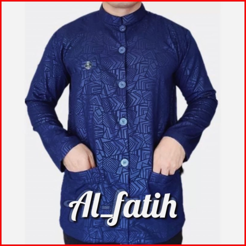 Baju Koko Atasan Motif Embos Abstrak Haibah Promo