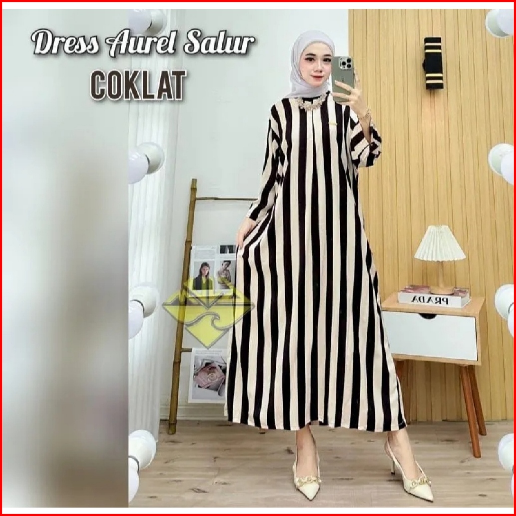 Gamis Midi Dres Daster Salur Lowo Lengan 3 4 Model Terbaru