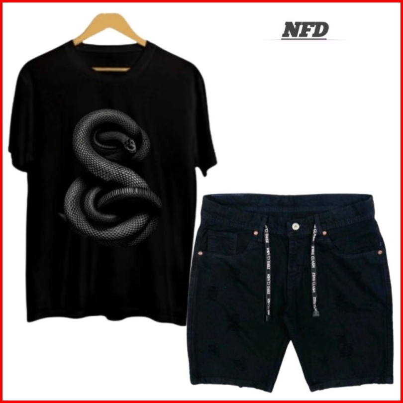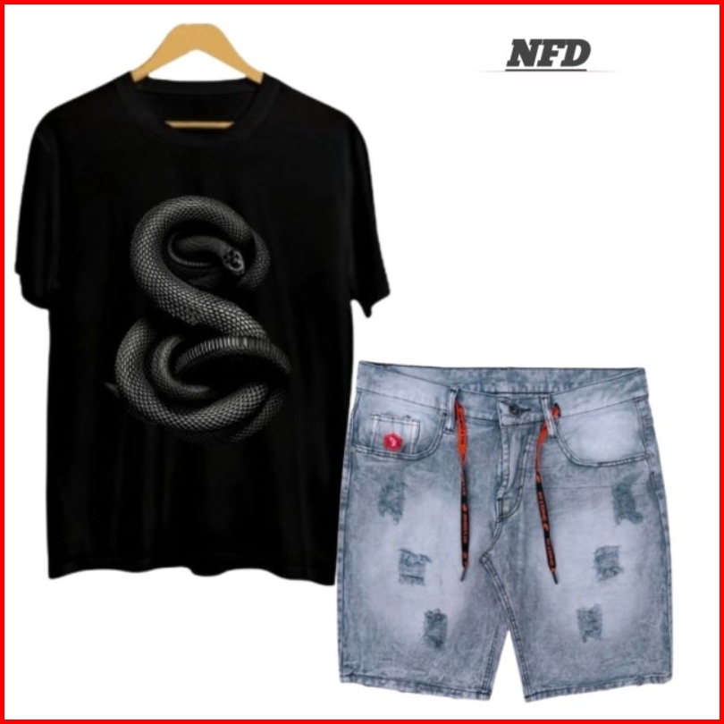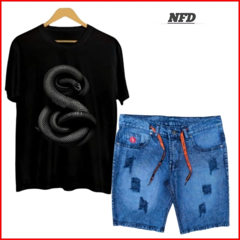 Paket Murah Setelan Kaos Distro Dan Celana Jeans Sobek Pendek Distro Terbaru