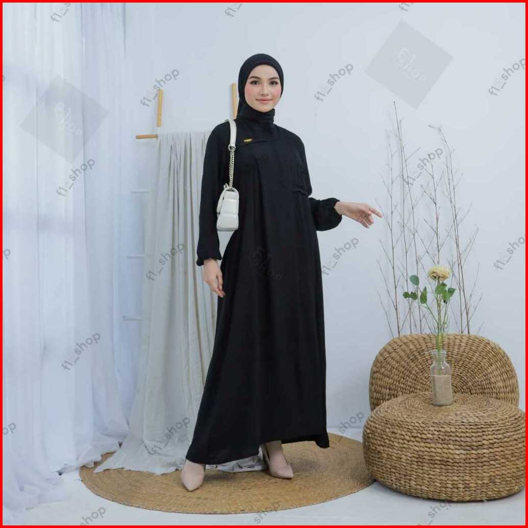 Gamis Wanita Muslim Terbaru Maxy Dress Kekinian Bahan Crinkle Airflow Premium Mix Brukat Tile