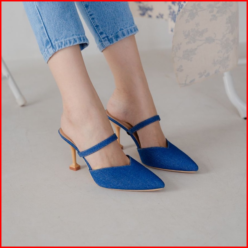 Ecclette - Dore Heels - 8 Cm Sepatu Hak Wanita Mules Stiletto Denim Wedding Graduation Wisuda Tali