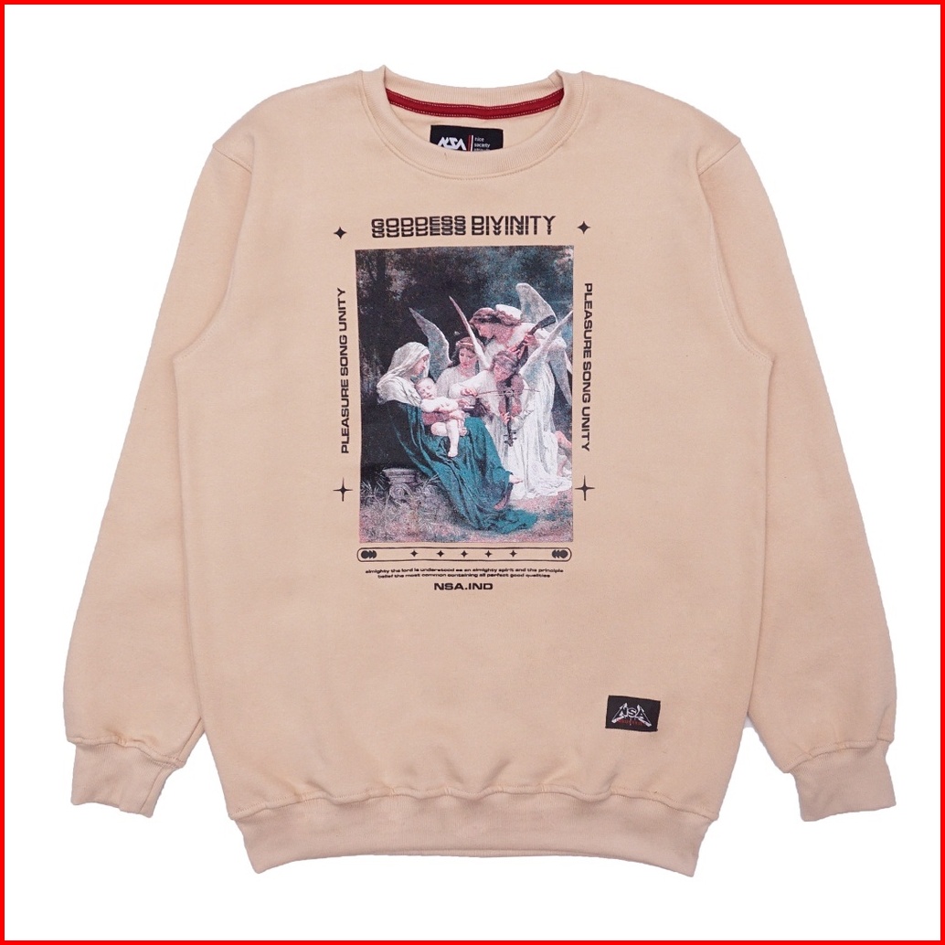 Nsa Ind Crewneck Sweater Goddess Divinity Creamy Beige Pria Wanita Oversize