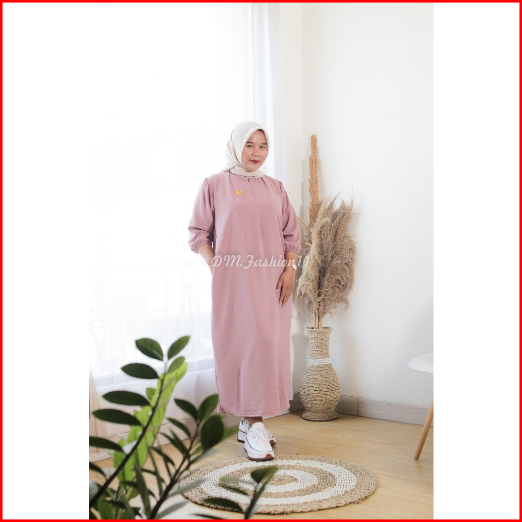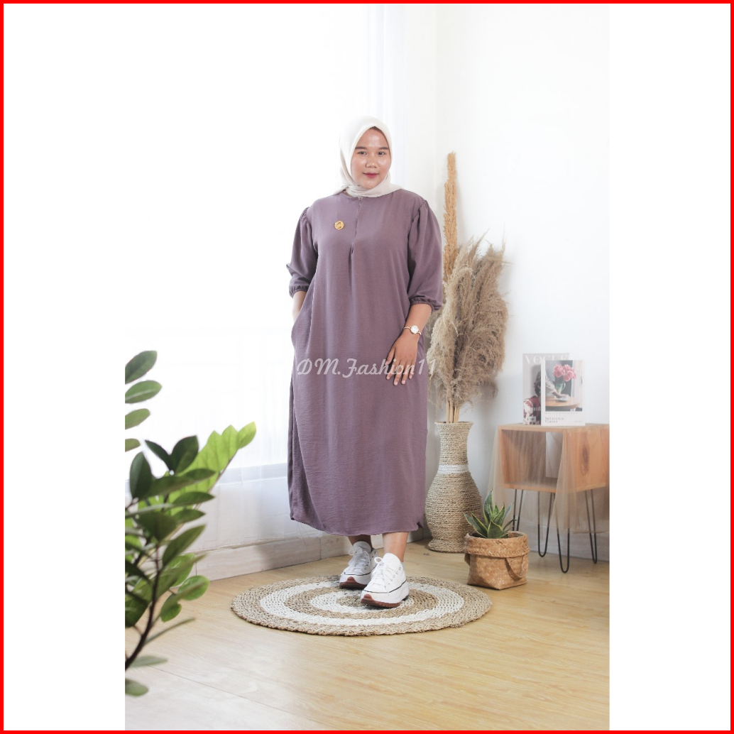 Fathia Gamis Dres Daster Cinkle Airflow Lengan 3 4 Karet