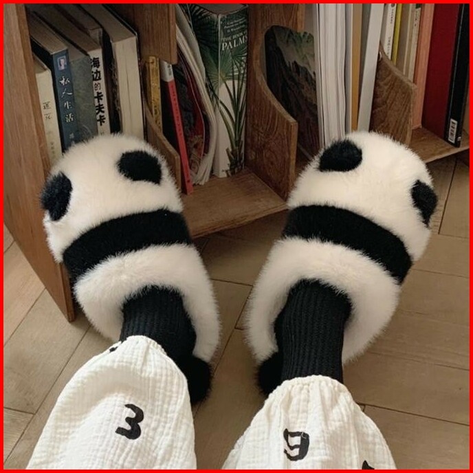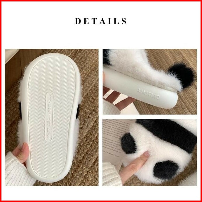 Tokkado Ichiro Sandal Rumah Premium Bulu Boneka Wanita Panda Lucu Gtm