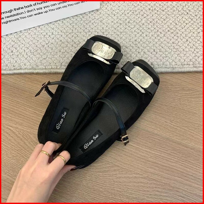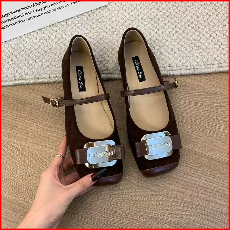 2025 Awal Musim Semi Kepala Persegi Baru Sepatu Peri Mary Jane Retro Logam Satu Kata Gesper Dengan Rok Mulut Dangkal Sep
