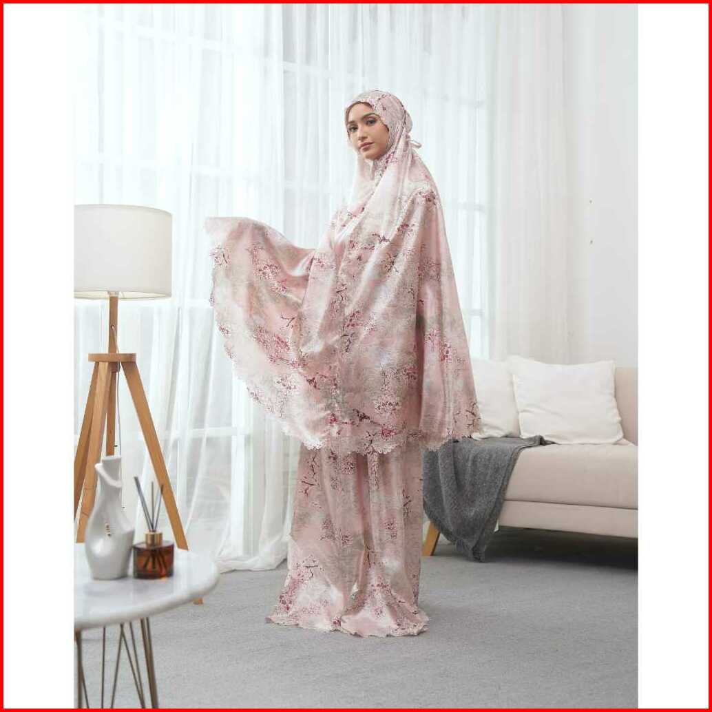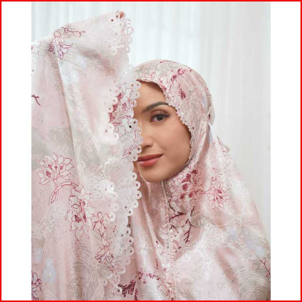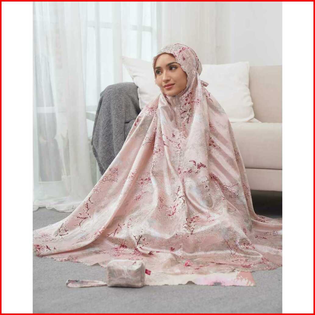 Maia By Hasya - Mukena Motif Bunga Sakura Terbaru Sarah 2 In 1 Lasser Cut Mukena Travel Traveling Dewasa Mewah Cantik Ju