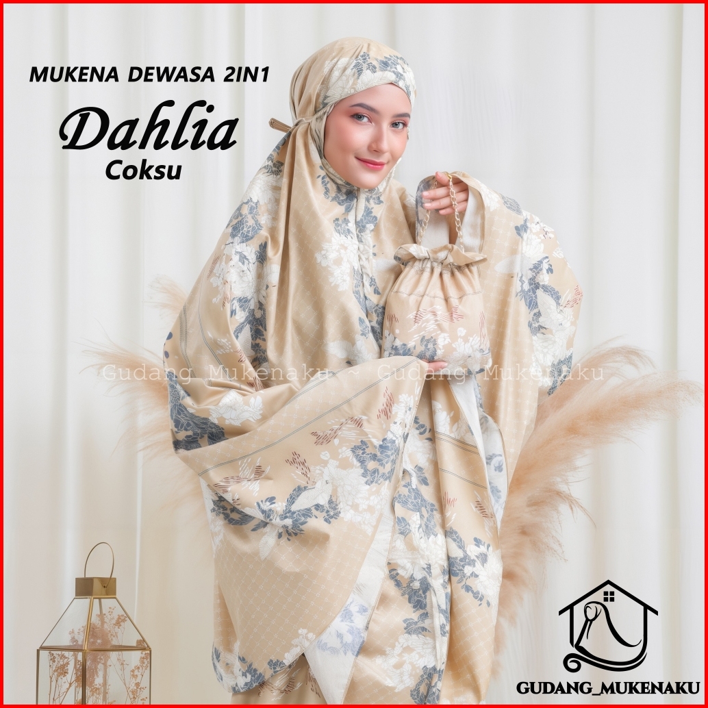Mukena Dewasa Jumbo Dahlia Bahan Katun Mikro Travel 2in1 Mewah Cantik By Gudang Mukenaku