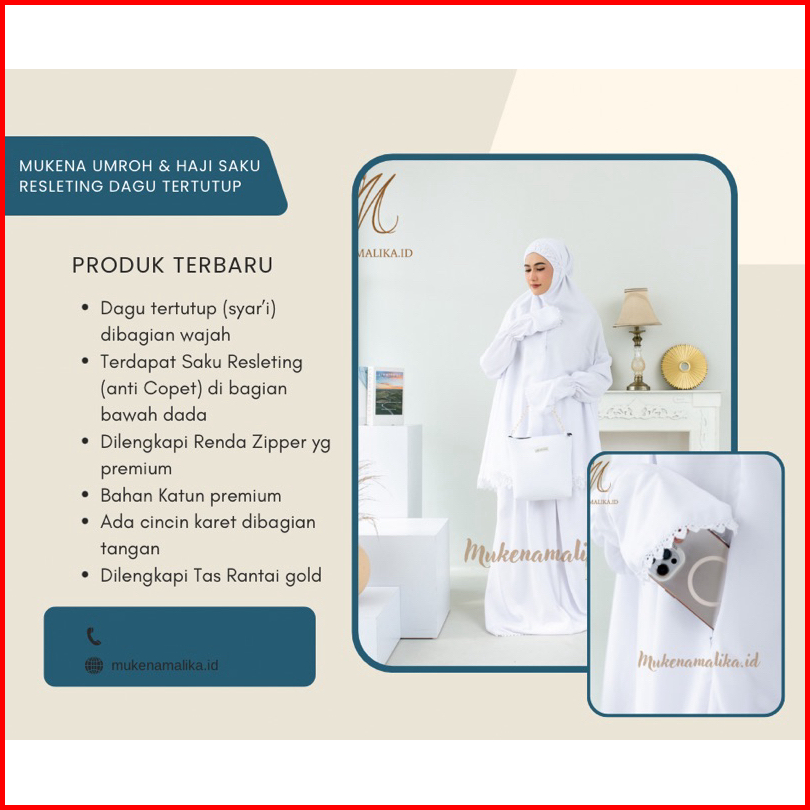 Mukena Dewasa Umroh Dan Haji Saku Resleting Berlengan Katun Premium