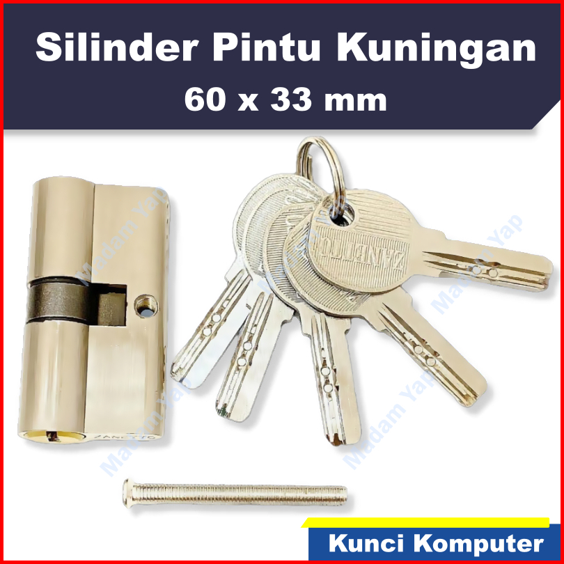 Silinder Kunci Pintu Rumah 60 X 33 Mm - Anak Kunci 5 Kuningan Komputer