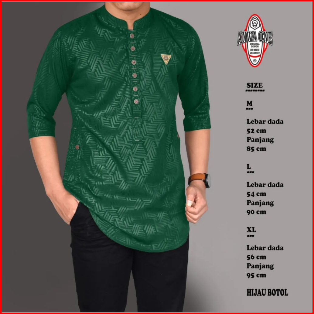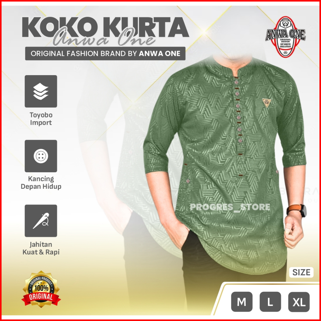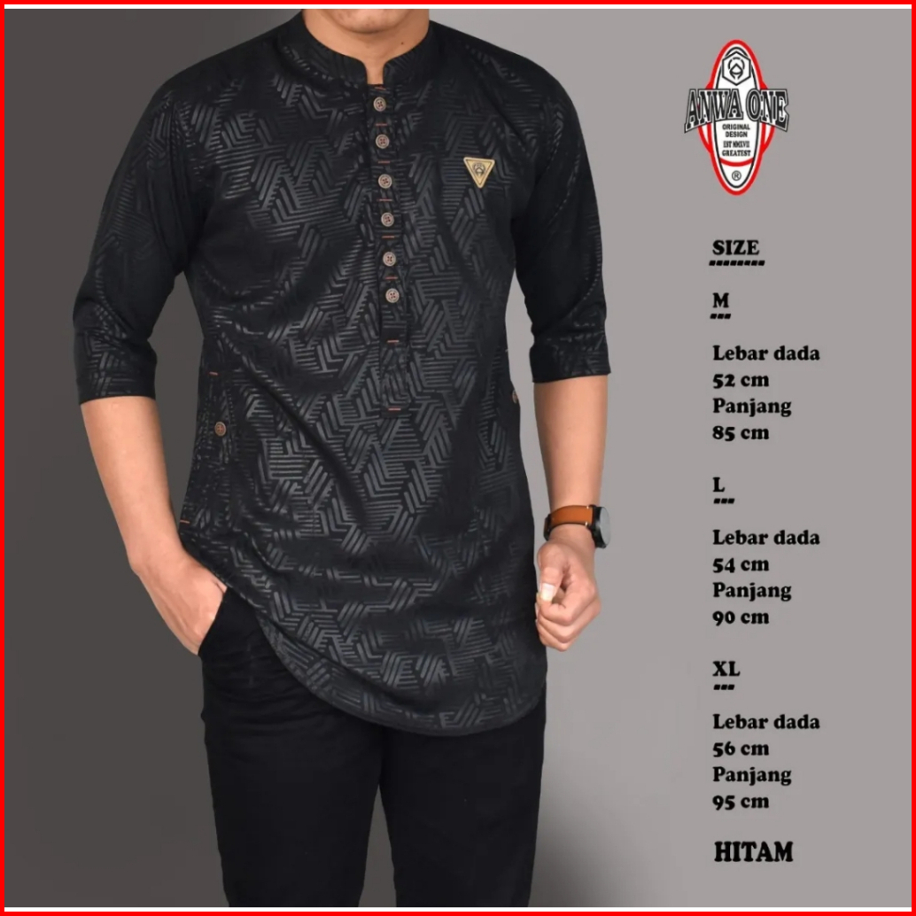 Baju Koko Kurta Premium Motif Embos Original Anwa One Model Kancing Koko Kurta Pria Muslim Model Kekinian Baju Muslim Pr