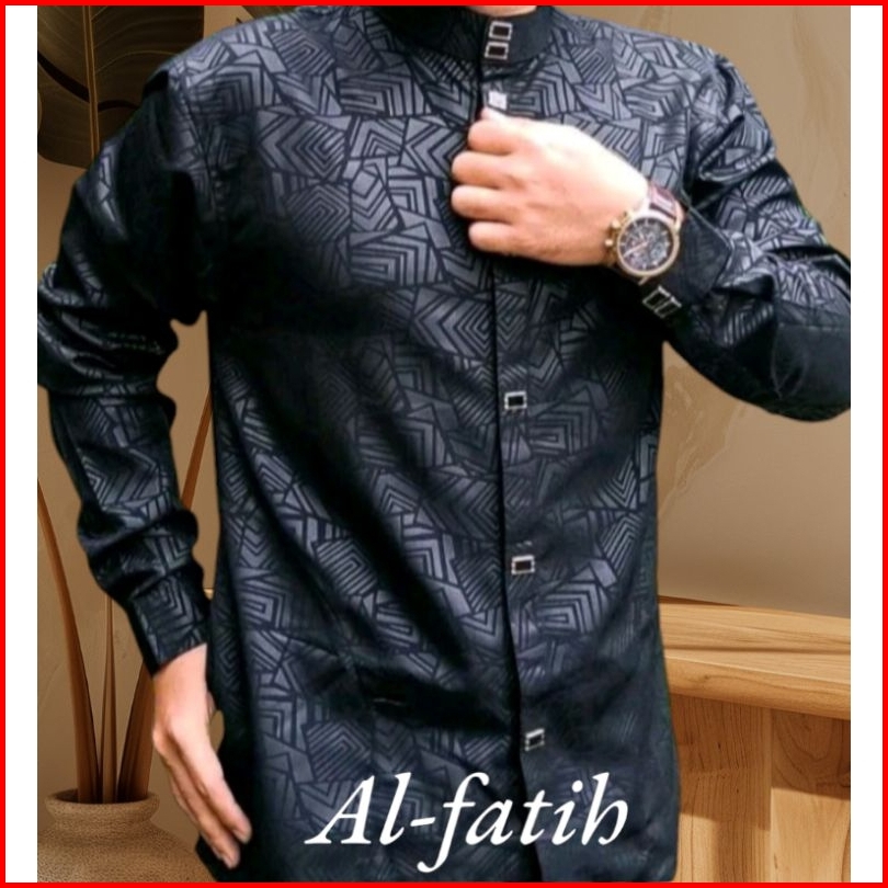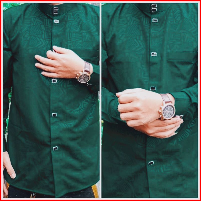 Baju Koko Kemko Langan Panjang Manset Sultan Dewasa Motif Embos Kancing Import