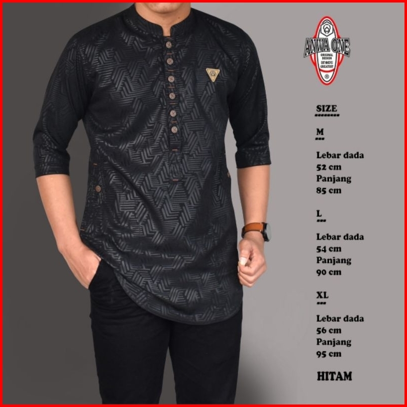 Baju Koko Kurta Terbaru Lengan 3 4 Bahan Embos Original Anwa One Koko Kurta Anwa One Lengan 3 4 Baju Muslim Pria Terbaru