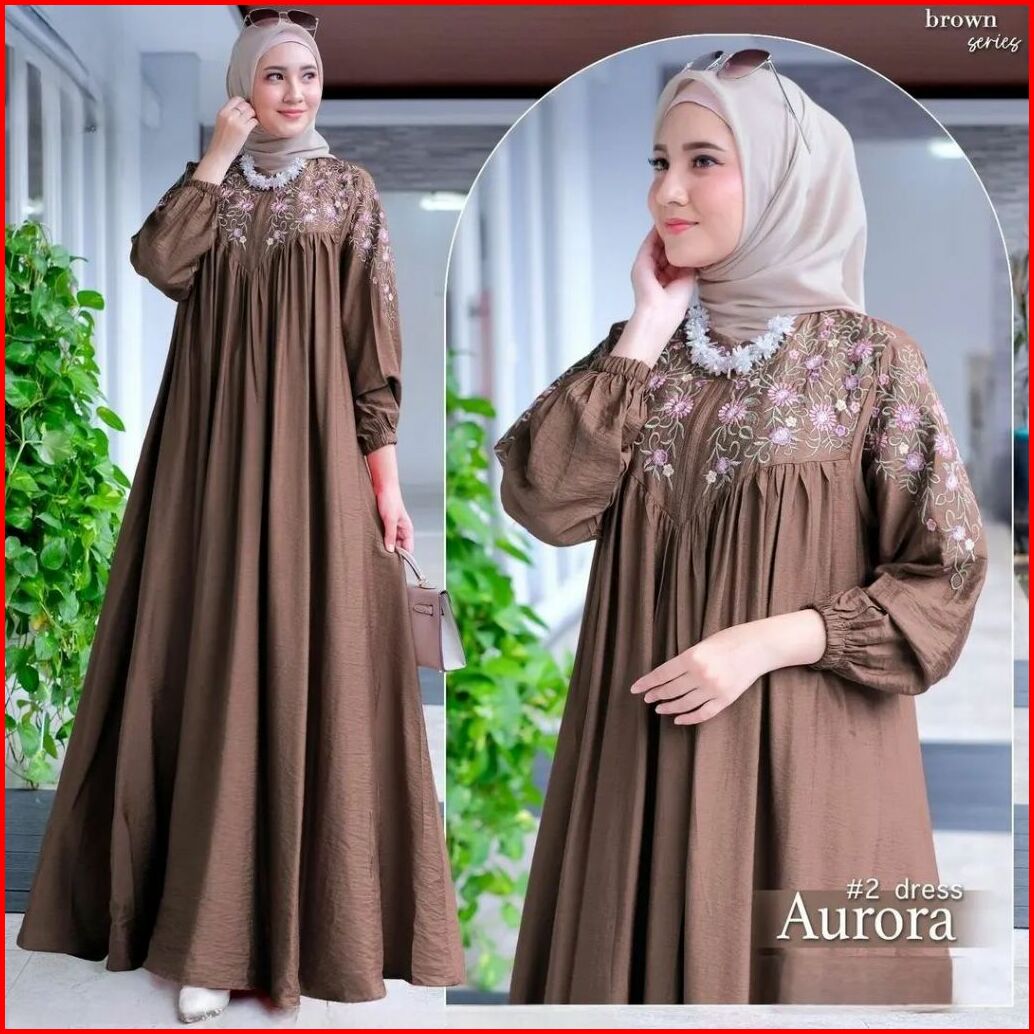 Aurora Dress Kondangan Cringkel Airflow Aplikasi Bordir Cantik Elgant Kekinian Ukuran M L Xl Dan Xxl