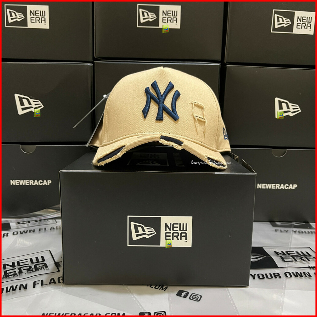 Topi Baseball Pria Ny Damage Ripped Sobek Krem Full Tag Bahan Tebal