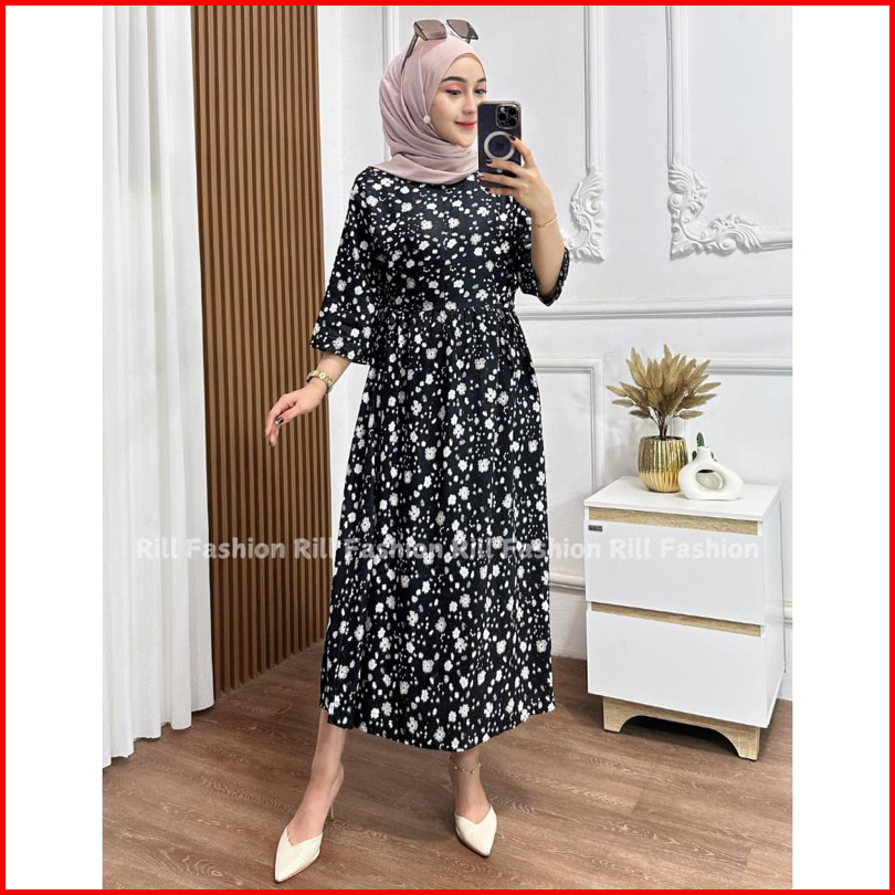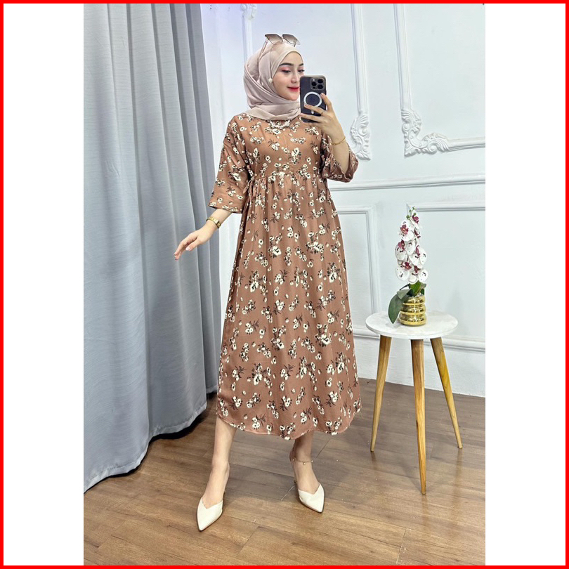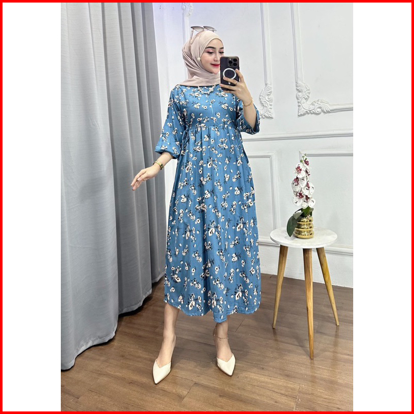 Daster Miranda Rayon Premium Motif Kekinian - Dress Busui Friendly - Gamis Rayon Lengan 3 4 Wanita Ld 110