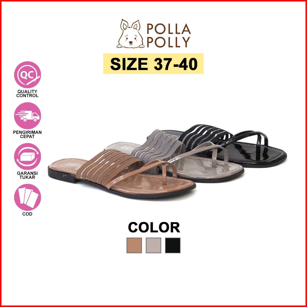 Polla Polly X Hyuna - Sandal Flat Wanita Kekinian Model Korea Sandal Teplek Minimalis 37-40