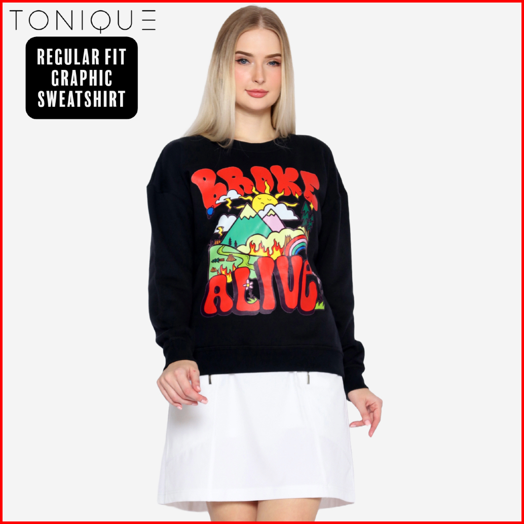 Tonique Sweatshirt Katun Wanita Hitam Leah Women S Regular Fit Cotton Sweatshirt Black