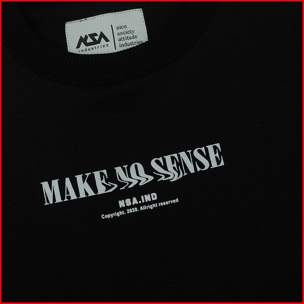 Nsa Ind Crewneck Sweater Make No Sense Black Pria Wanita Oversize