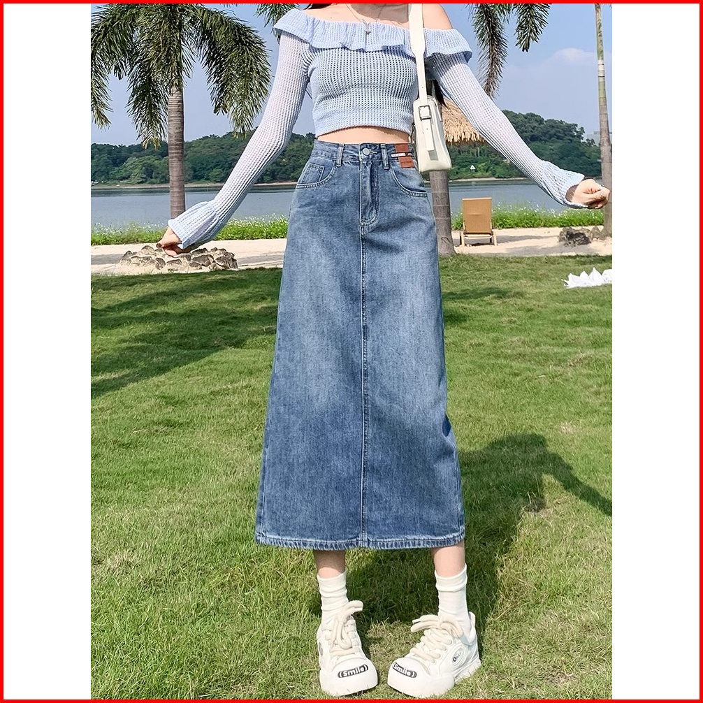 Retro Wanita Highwaist Loose Rok Korean Style Rok Panjang Wanita