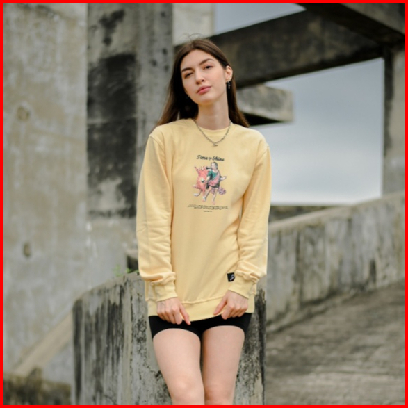 Nsa Ind Crewneck Sweater Time To Shine Light Yellow Wanita Oversize