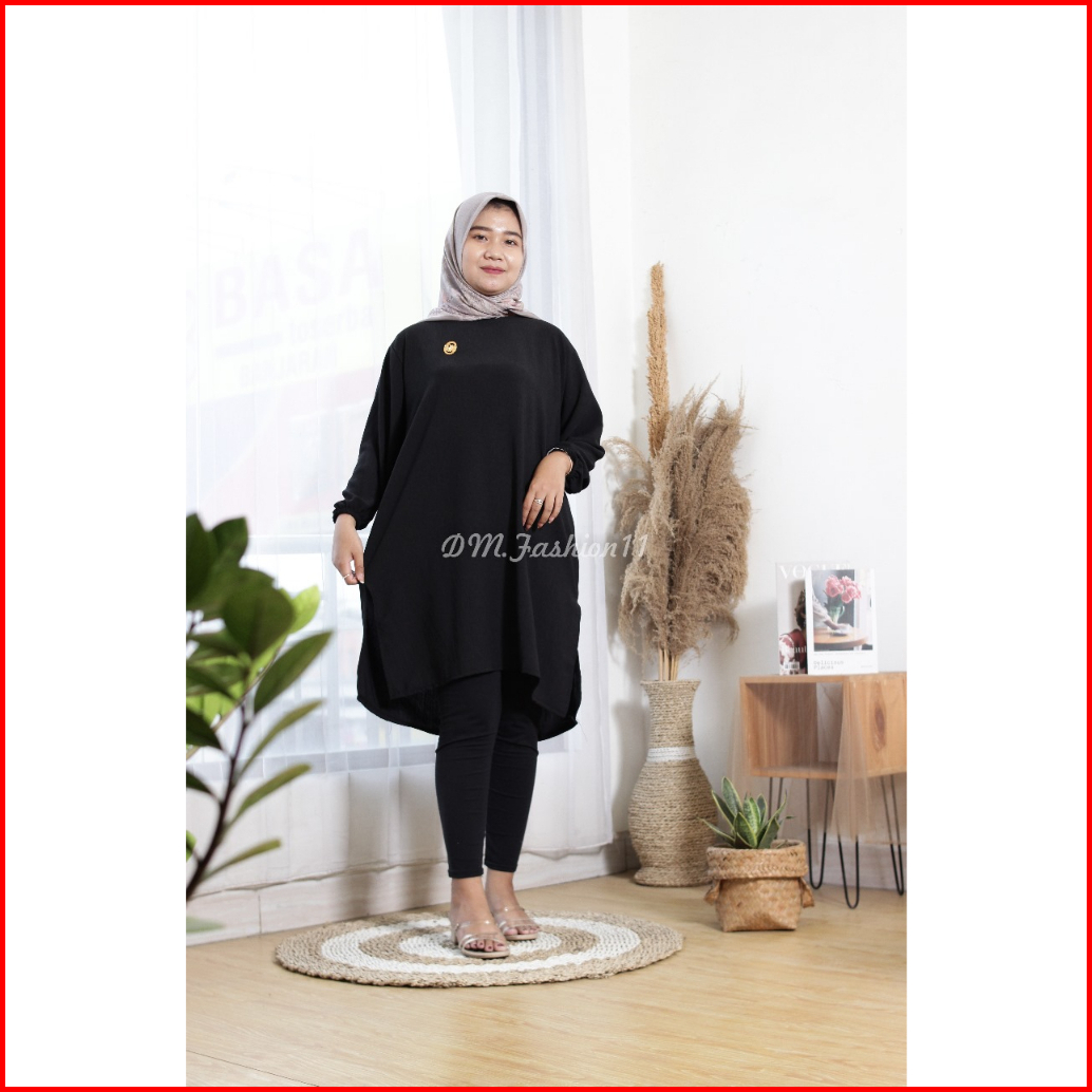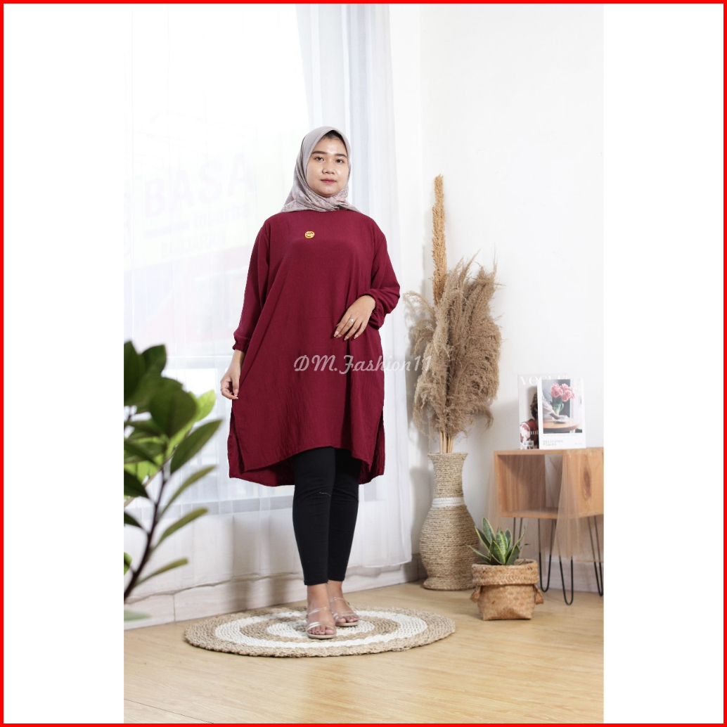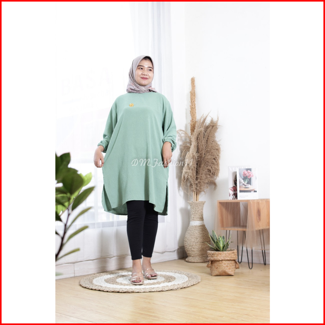 Tunik Polos Oblong Lengan Karet Crinkle Airflow Dm Fshion11 Oversize