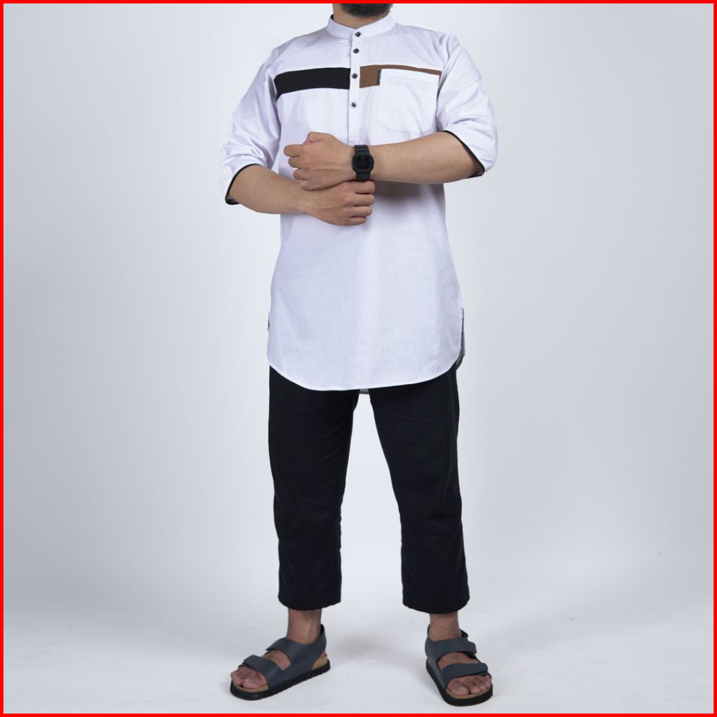 Khoirummah Kurta Ammar Dewasa - Koko Polos Pria Dewasa Lengan 3 4 - White