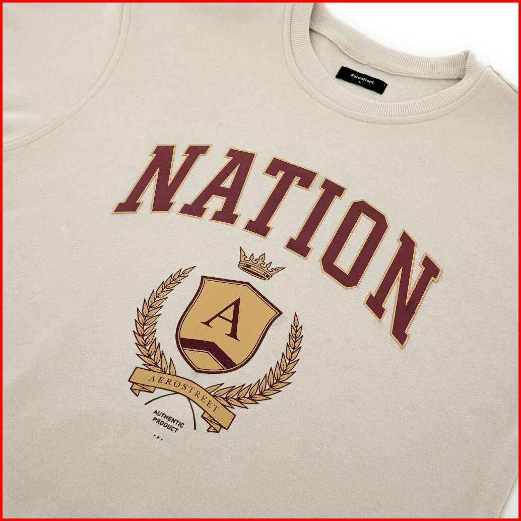 Aerostreet Crewneck Nation Krem Man Sweater Sweatshirt Bbdaa