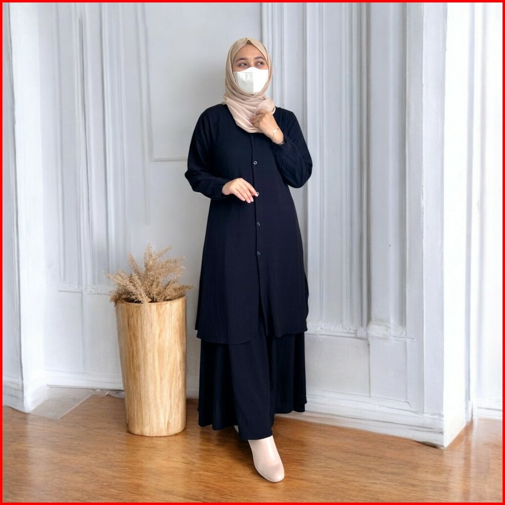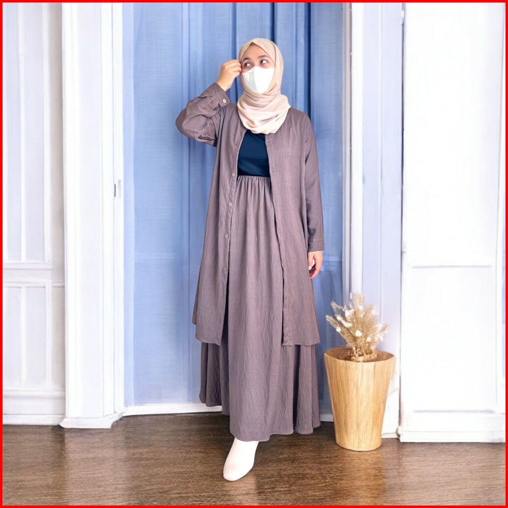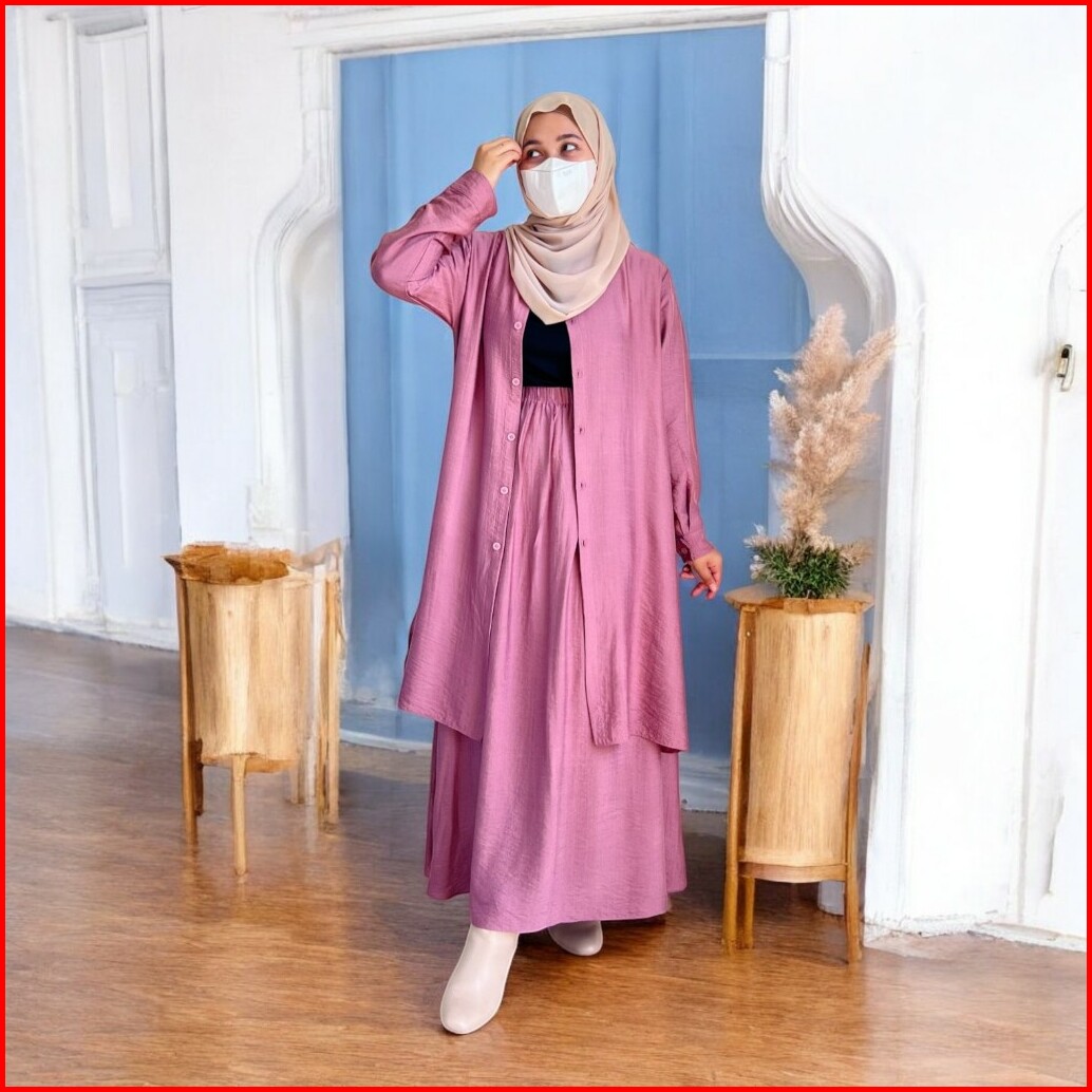 Keyla One Set Atasan Dan Bawahan Rok Bahan Linen Setelan Tunik Kancing Aktif Ootd Casual Wanita 2025