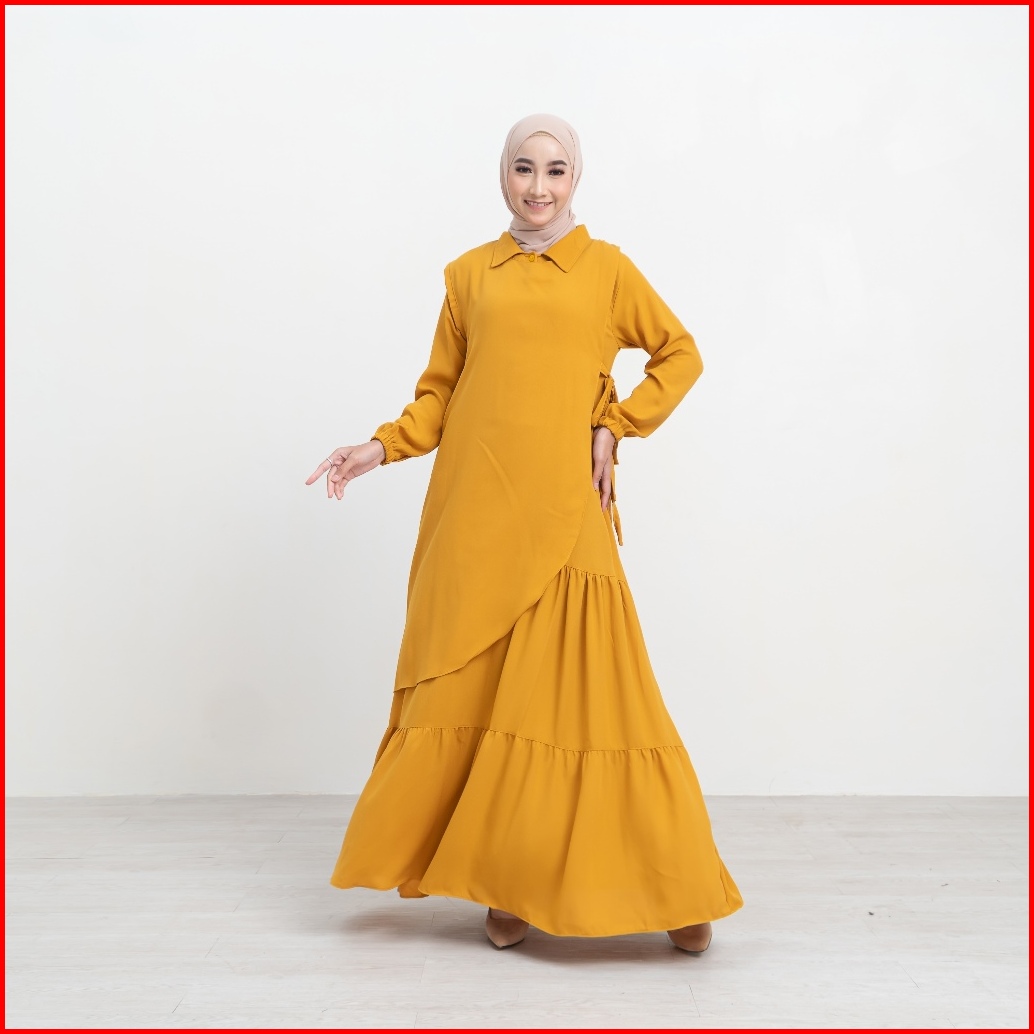 Iqra Two In One Setelan Baju Gamis Ruffle Serut Rompi Outer Dress Kondangan Korean Style Kekinian