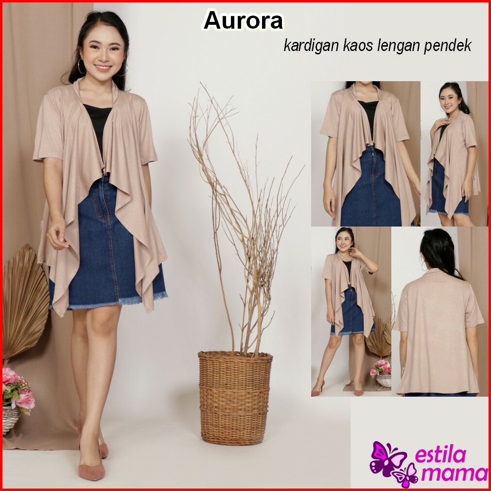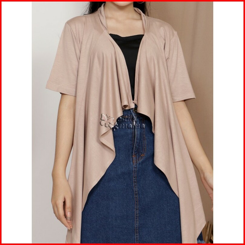 Estila Mama - Aurora Kardigan Outer Lengan Pendek Kaos Drape - Moka Putih Marun Biru Abu Hitam M Xl