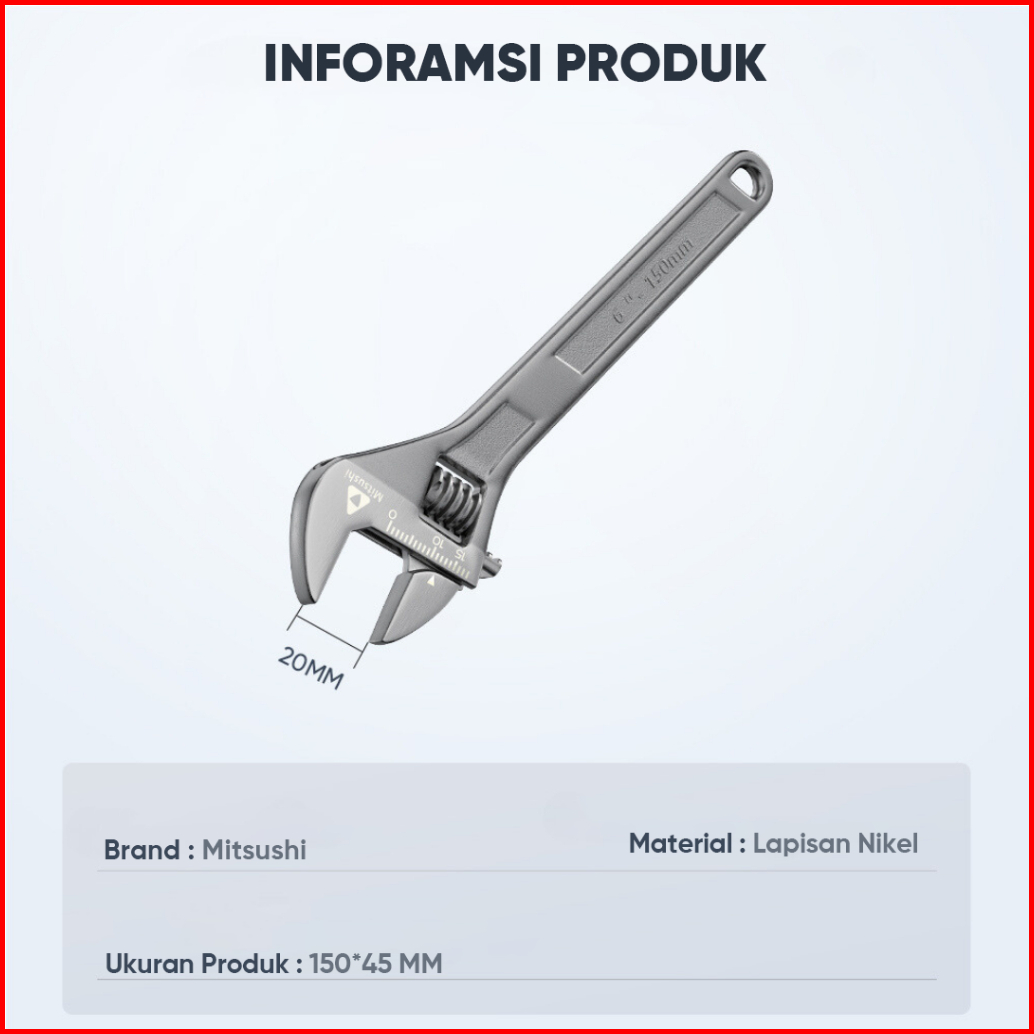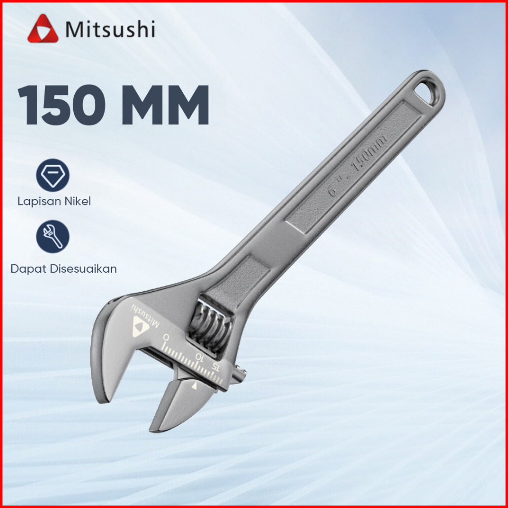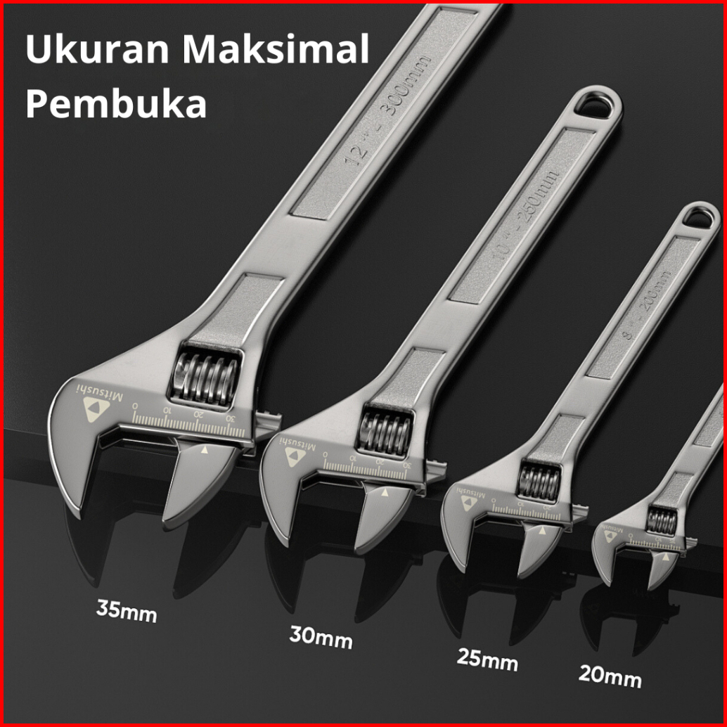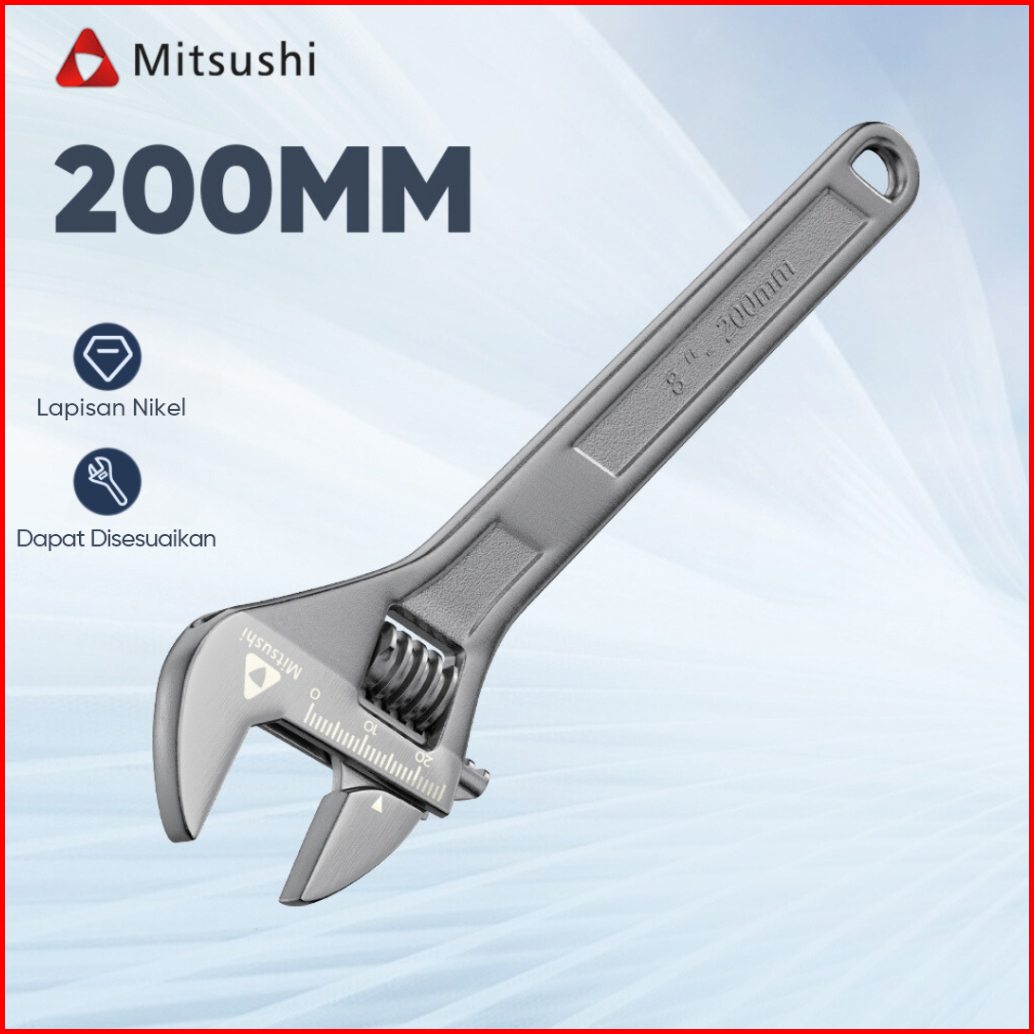 Mitsushi Kunci Inggris Ukuran 6 8 10 12 Inch Adjustable Wrench 6-12 Inch