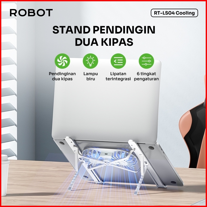 Robot Rt-ls04 Stand Laptop Macbook Portable Aluminium Alloy Liftable Foldable Garansi Resmi
