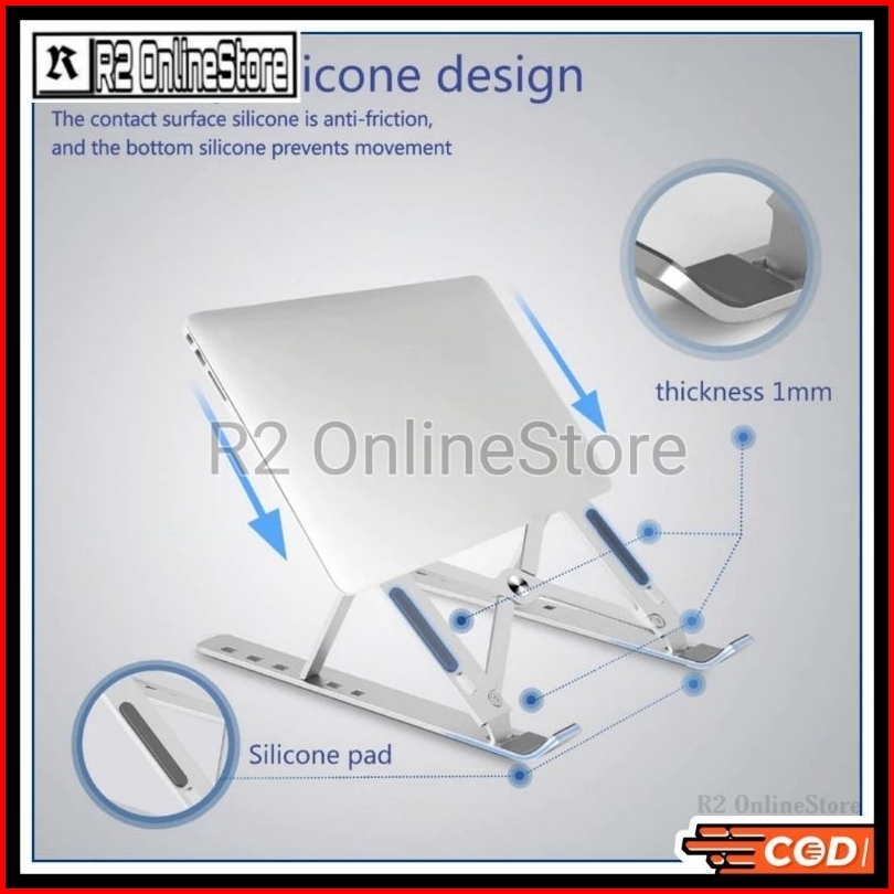 Laptop Stand Holder Aluminium Portable Lipat Riser Foldable Adjustable Height 6 Level Ketinggian - Stand Holder Dudukan