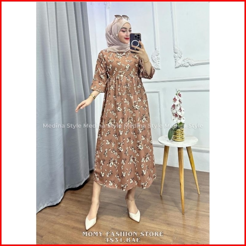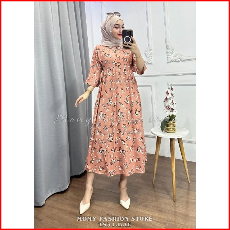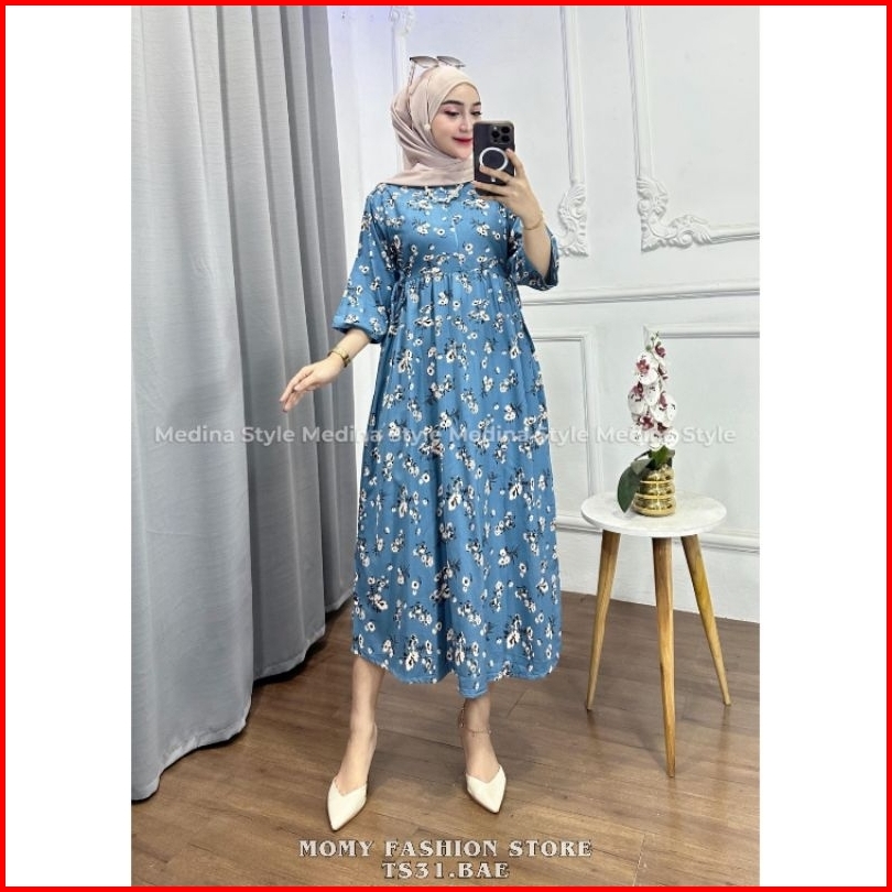 Midi Dress Rayon Premium Motif Bunga Gamis Rayon Motif Dress Simpel Keseharian Miranda