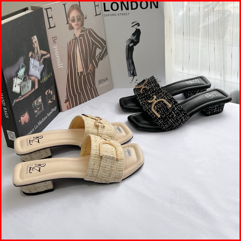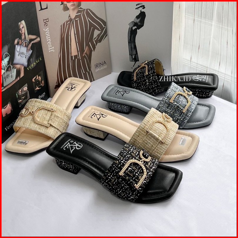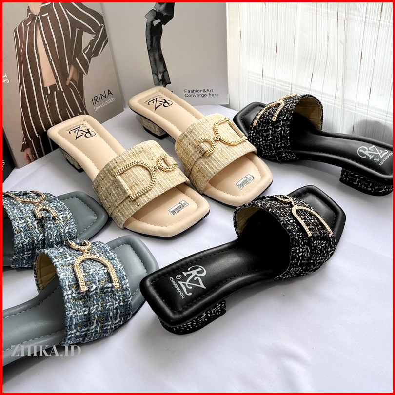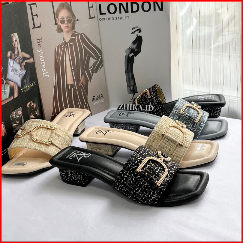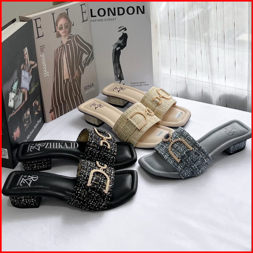 Nimue Sandal Wanita Heels 3cm Sendal Cewek Bahan Tweed Lucu-nimue