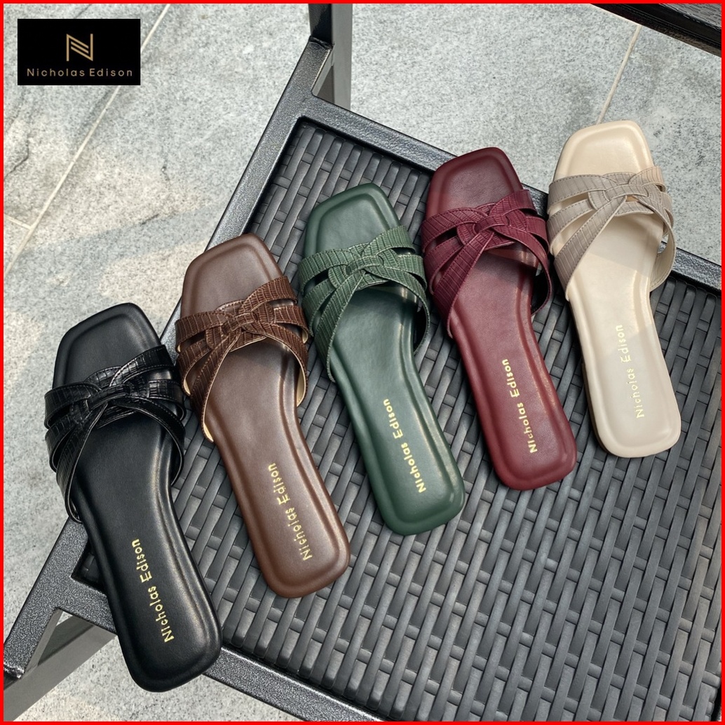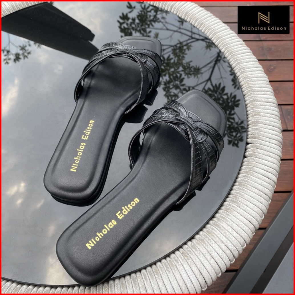 Nicholas Edison Sandal Costa Black Sandal Flat Nyaman Terbaru